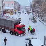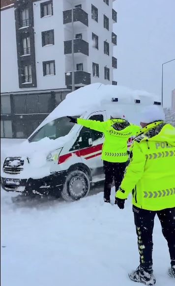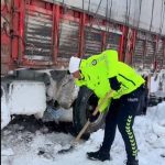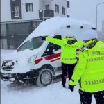 Ardahan’da İl Emniyet Müdürlüğü’ne bağlı Trafik Şube Müdürlüğü ekipleri, kar yağışı ve buzlanma nedeniyle yolda kalan araçların kurtarılmasında sürücülere yardım etti.