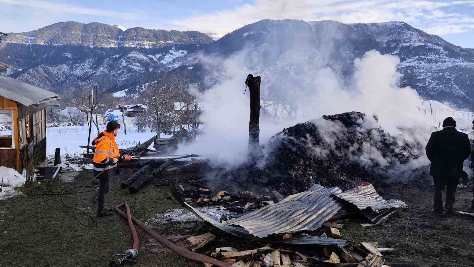 Artvin’in Ardanuç ilçesine bağlı Tosunlu köyünde sabah saatlerinde çıkan yangında bir ahır kullanılamaz hale geldi.