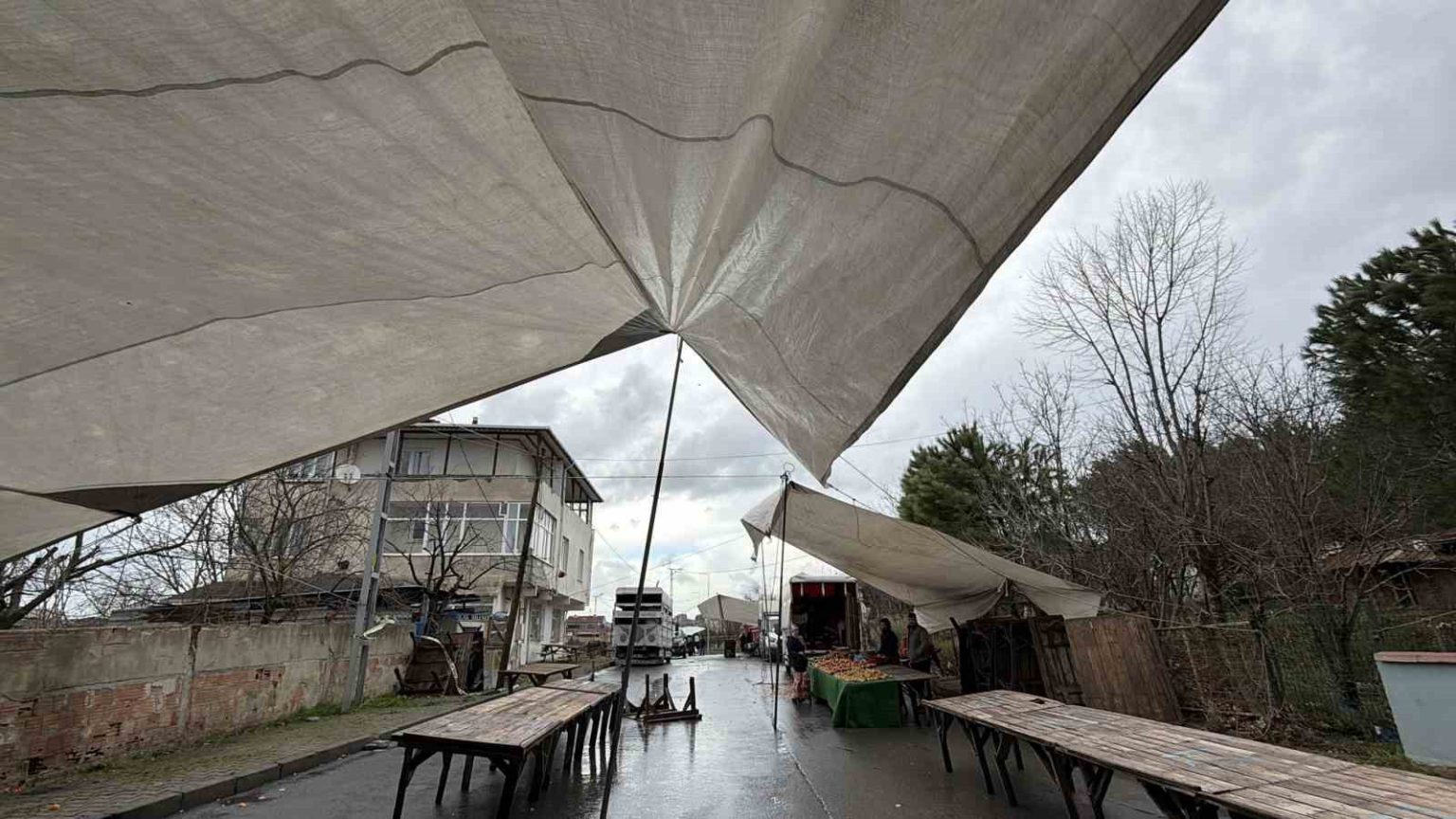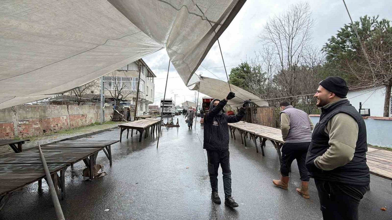 Arnavutköy’de sabah saat 08.00’den itibaren pazara gelen esnaf, şiddetli rüzgâr nedeniyle çadırlarını sabitlemekte güçlük çekti. Rüzgârın etkisiyle çadırların yerinden oynaması üzerine bazı pazarcılar tezgâhlarını hiç açamazken, açmaya çalışanlar ise iplerle ve ağırlıklarla çadırlarını tutmaya çalıştı. Fırtına nedeniyle müşteri sayısında da büyük düşüş yaşanırken, pazara gelen vatandaşların çoğu alışveriş yapmadan geri dönmek zorunda kaldı. Zor şartlar altında tezgâhını ayakta tutmaya çalışan pazarcılar, yaşanan durumun hem maddi hem de manevi olarak kendilerini zorladığını dile getirdi.