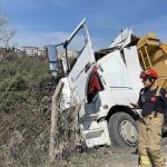 İstanbul’un Arnavutköy ilçesinde seyir halindeki hafriyat kamyonu kontrolden çıkarak yol kenarındaki çayırlık alana uçtu. Kazada sürücü hafif şekilde yaralanırken, olayda büyük bir facianın eşiğinden dönüldü.