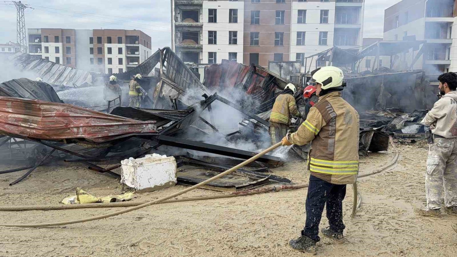Arnavutköy’de şantiye konteynerlarında yangın: İşçiler son anda kurtuldu