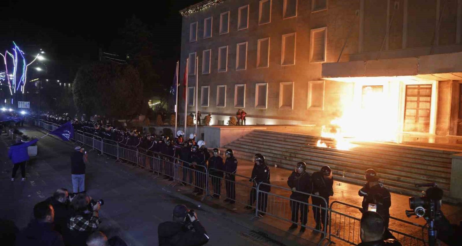 Arnavutluk’un başkenti Tiran’da hükümeti yolsuzlukla suçlayan protestocular, Başbakanlık binasına molotof kokteyli fırlattı.