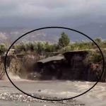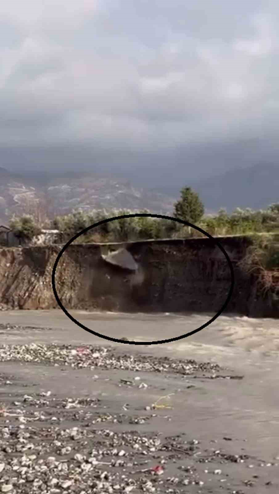 Hatay’da etkili olan aşırı yağışla birlikte dere yatağının yanı başında bulunan yolun çöktüğü anlar kameraya yansıdı.