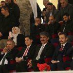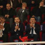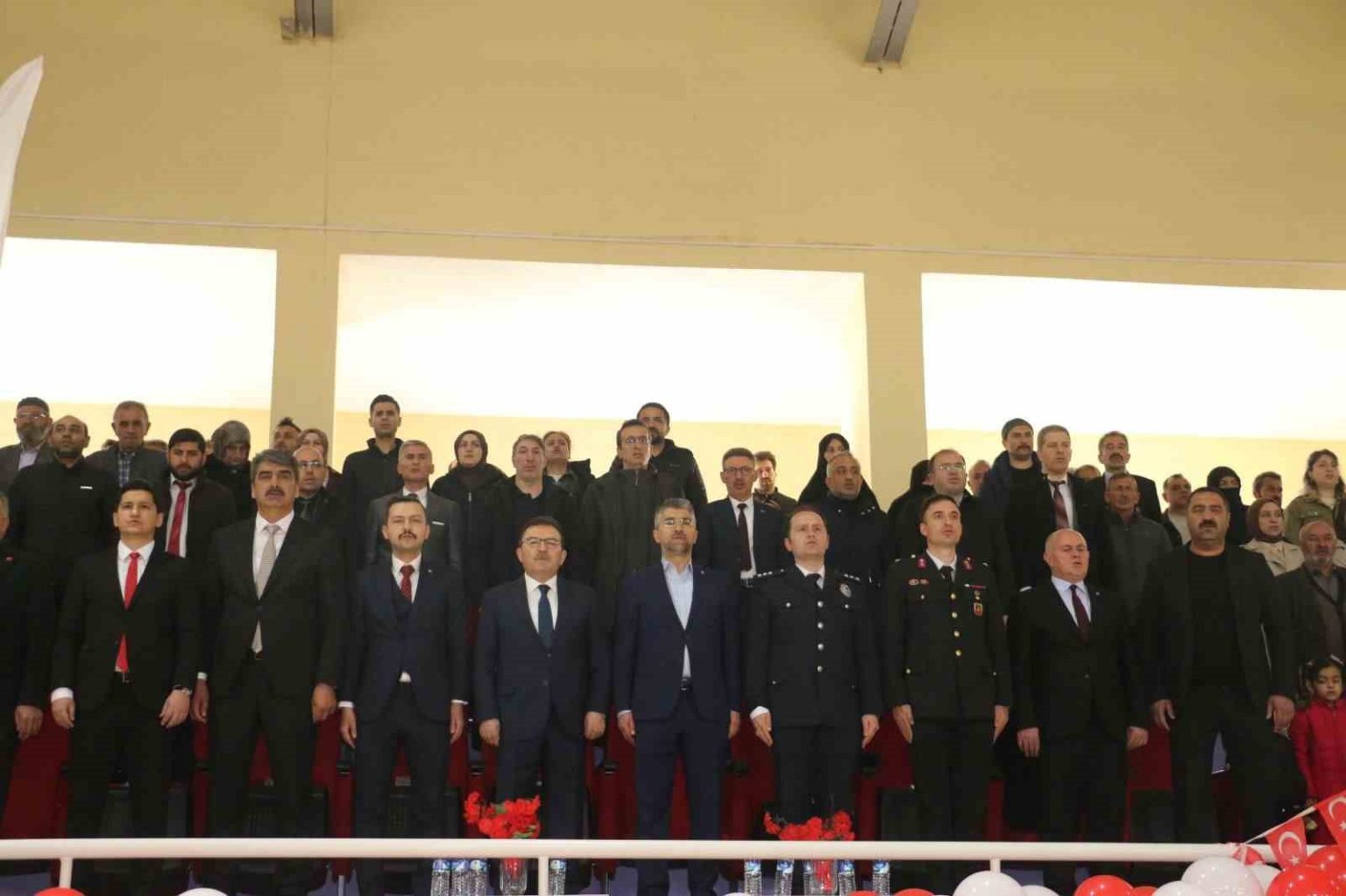 Resmi törenin ardından kutlama programı, Aşkale Gençlik ve Spor İlçe Müdürlüğü Kapalı Spor Salonu’nda devam etti. Buradaki program da saygı duruşu ve İstiklal Marşı’nın okunmasıyla başladı.