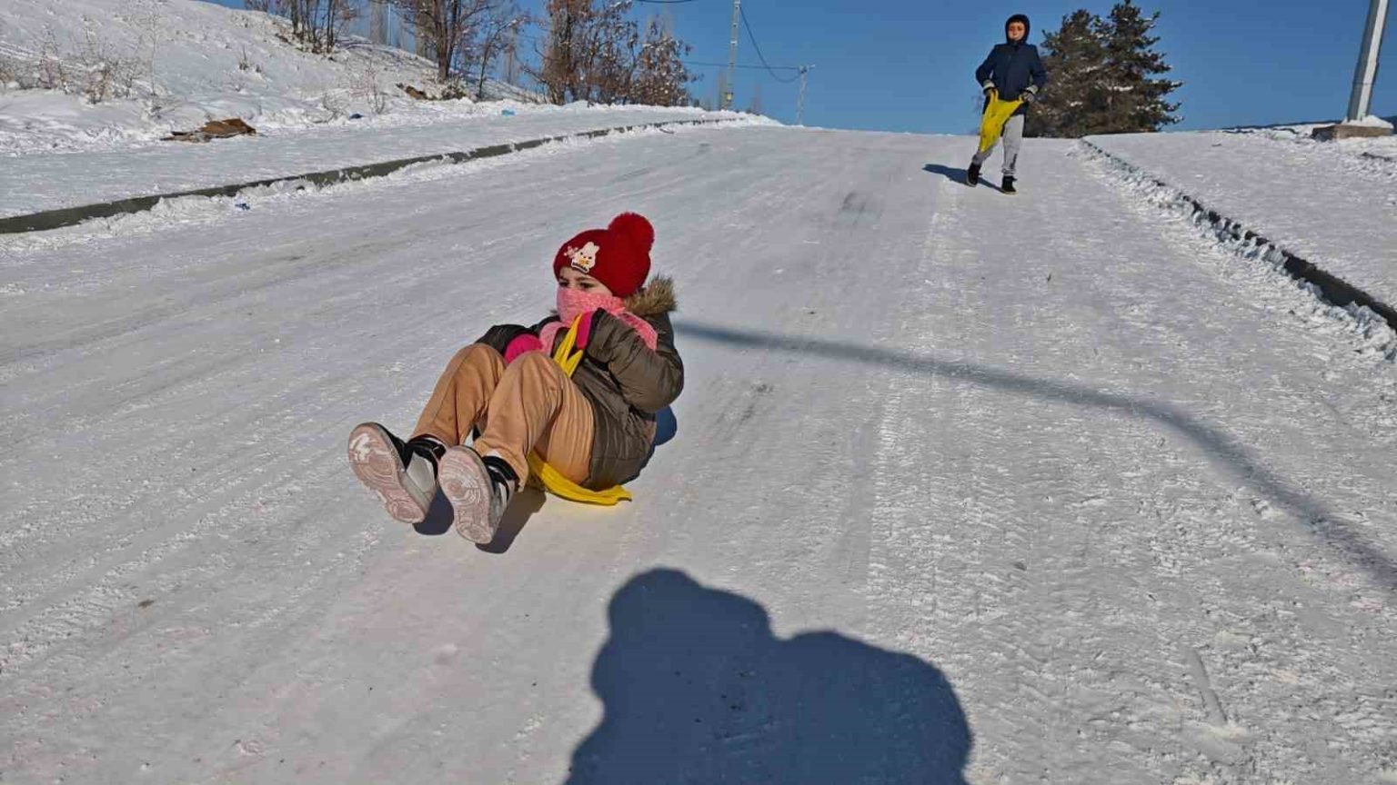 Soğuk hava günlük yaşamı olumsuz etkilerken, çocuklar ise dondurucu havaya aldırış etmedi. İlçenin farklı noktalarında karla kaplı yokuşlarda kayan çocuklar, soğuk havaya rağmen doyasıya eğlenerek renkli görüntüler oluşturdu. Çocukların neşesi, zorlu kış şartlarına rağmen yüzleri gülümsetti.