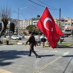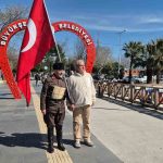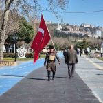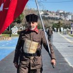 Askeri kıyafeti ve elinde Türk bayrağıyla İstanbul’dan Çanakkale’ye yürüyor
