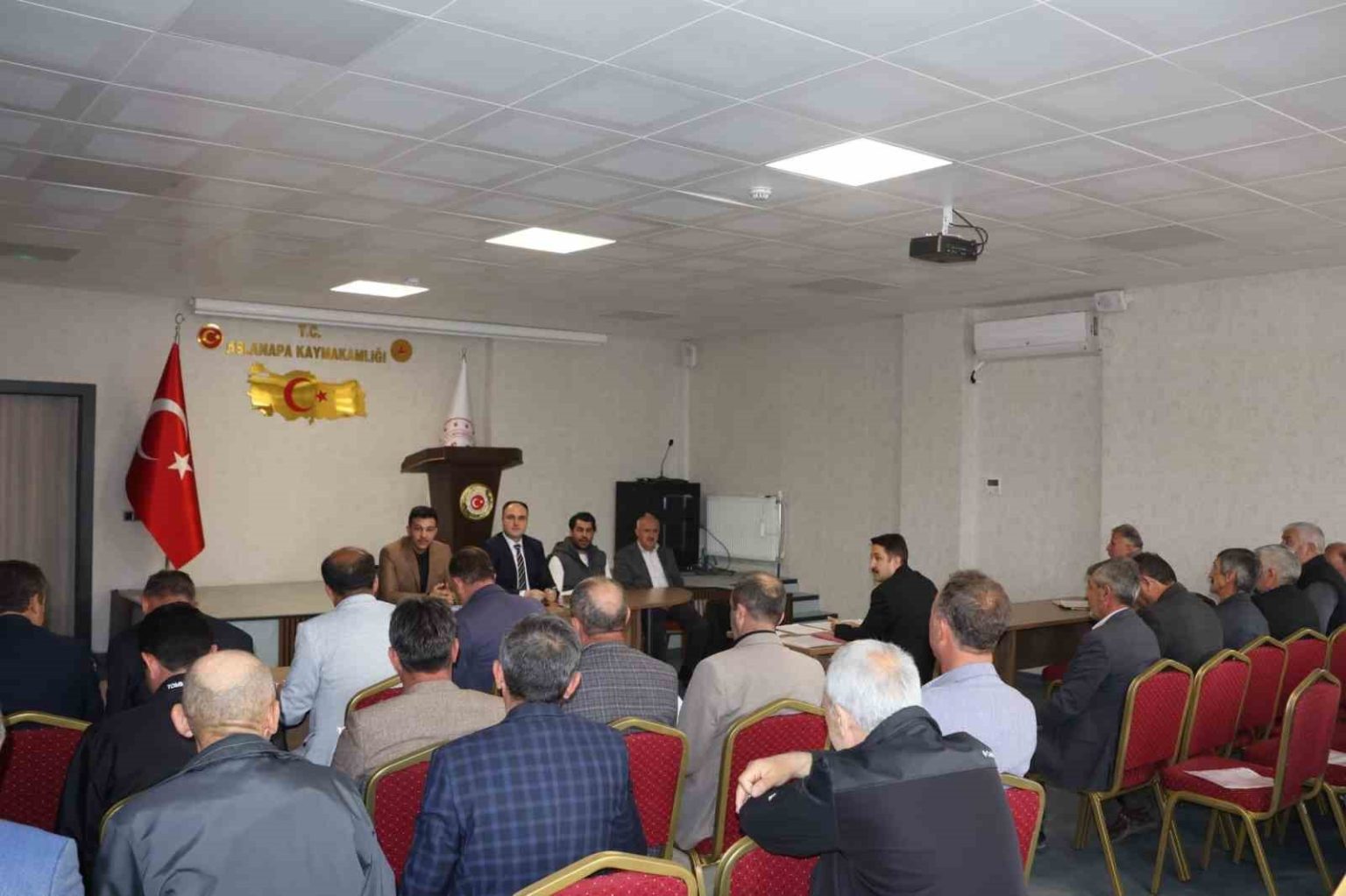 Kütahya’nın Aslanapa ilçesinde, Kaymakam İsmail Tosun’un başkanlığında köy muhtarlarıyla kamu hizmetlerinin değerlendirildiği bir toplantı gerçekleştirildi.