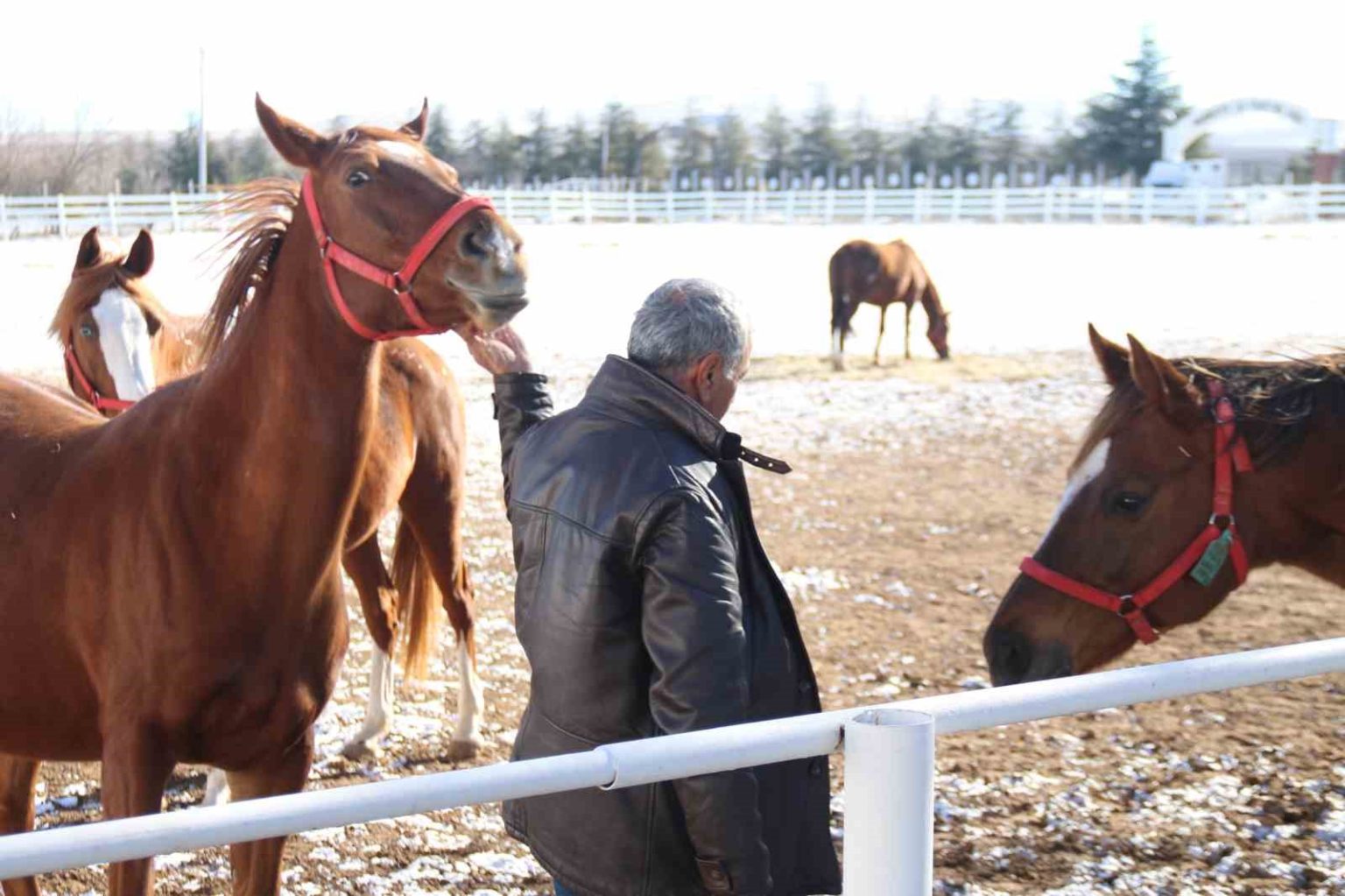 Atların kış bakımı hakkında konuşan Yenel Kaya, “Atlarımızın sağlığı için onları her gün dışarı çıkarmak zorundayız. Hayvanlar dışarı çıkmadıkları zaman strese giriyorlar. Doğaları gereği dış ortamı görmeleri, yerde otlarını ve yoncalarını yemeleri gerekiyor; ancak bu şekilde gece içeride rahatça dinlenebiliyorlar. Kış bakımı suyun, havanın ve zeminin soğuk olması nedeniyle yaza göre biraz daha ağır geçiyor. Sabahları yerlerde şiddetli don varsa hayvanları dışarı çıkarmıyoruz. Ayaklarında nal olmadığı için ‘maya’ dediğimiz hassas taban yapıları nedeniyle kayıp düşmelerinden veya ayaklarının acımasından çekiniyoruz; sonuçta bu atlarımızın hepsi gebe. Zemin uygun olduğunda sabah 9-10 gibi salıyoruz, akşam 16.00 gibi de erken saatte içeri alıyoruz” dedi.