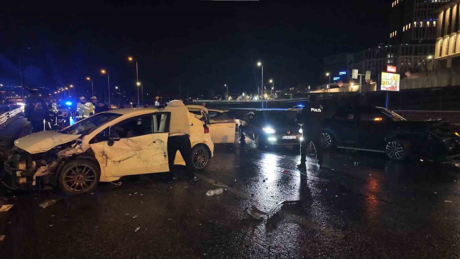 Toplam 7 aracın karıştığı kazada 3 kişi yaralandı. İhbar üzerine olay yerine polis, itfaiye ve sağlık ekipleri sevk edildi. Yaralılar, olay yerinde yapılan ilk müdahalenin ardından ambulanslarla çevredeki hastanelere kaldırıldı.