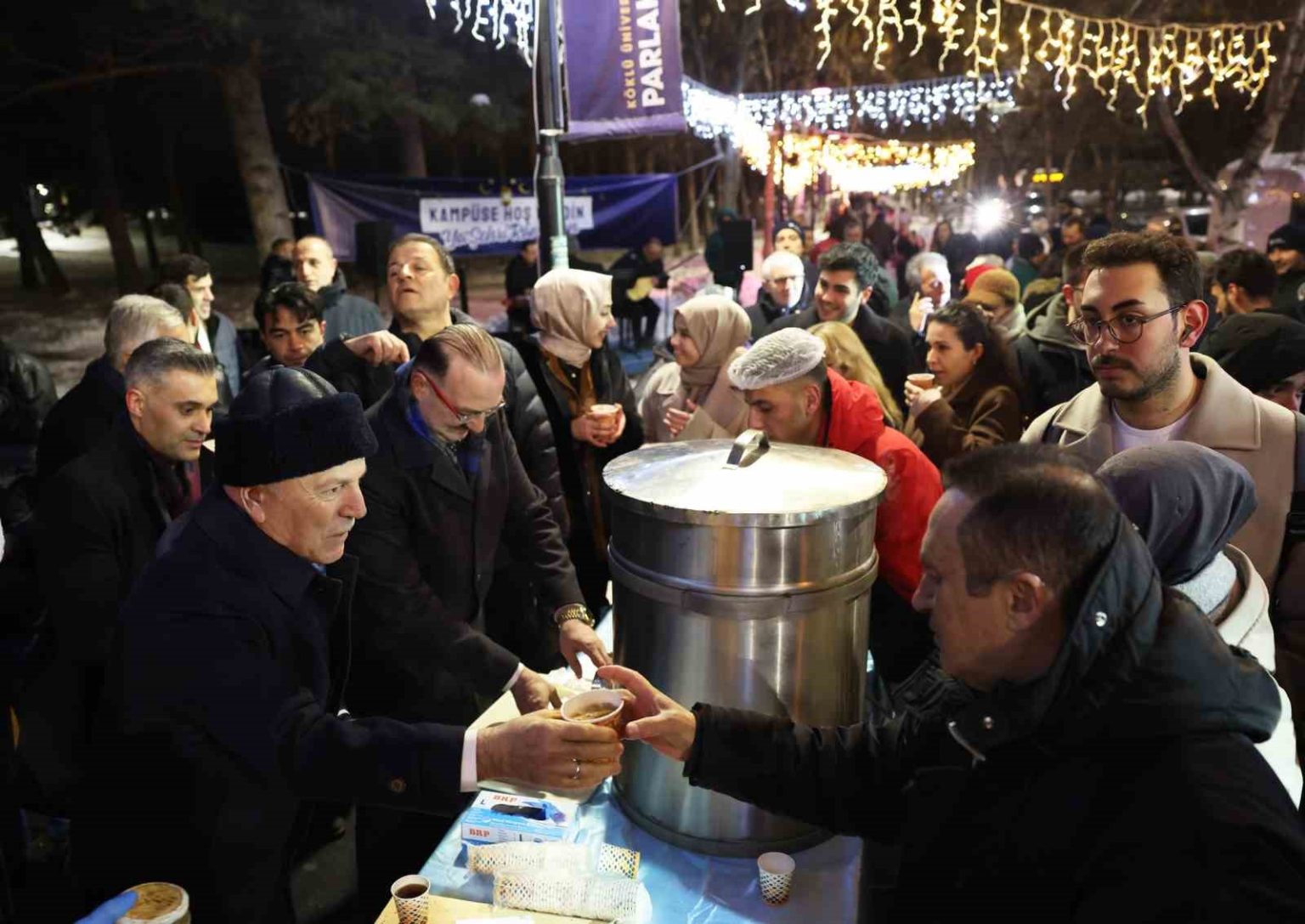 Ramazan ayının birlik, beraberlik ve paylaşma ruhunu yaşatmayı hedefleyen alanda her akşam iftar sonrası düzenlenen çay ve tatlı ikramları, samimi sohbetlerle buluşarak kampüste sıcak bir Ramazan atmosferi oluşturuyor.