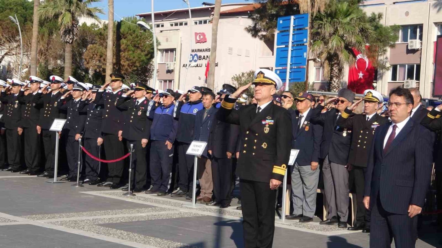 Törene Marmaris Kaymakamı Nurullah Kaya, Aksaz Deniz Üs Komutanı Tuğamiral Hamdi Abanoz, Marmaris İlçe Jandarma Komutanı Binbaşı Berker Dongul, İlçe Emniyet Müdürü Samed Seyhan, Marmaris Cumhuriyet Başsavcı Vekili Ömer Faruk Gözeger, kamu kurum ve kuruluşlarının müdürleri, Marmaris’te yaşayan Muharip Gaziler Derneği üyeleri, siyasi parti, oda ve sivil toplum kuruluşlarının temsilcileri ile okullar, öğrencilerin yanı sıra Marmaris’te yaşayan çok sayıda vatandaş katıldı.