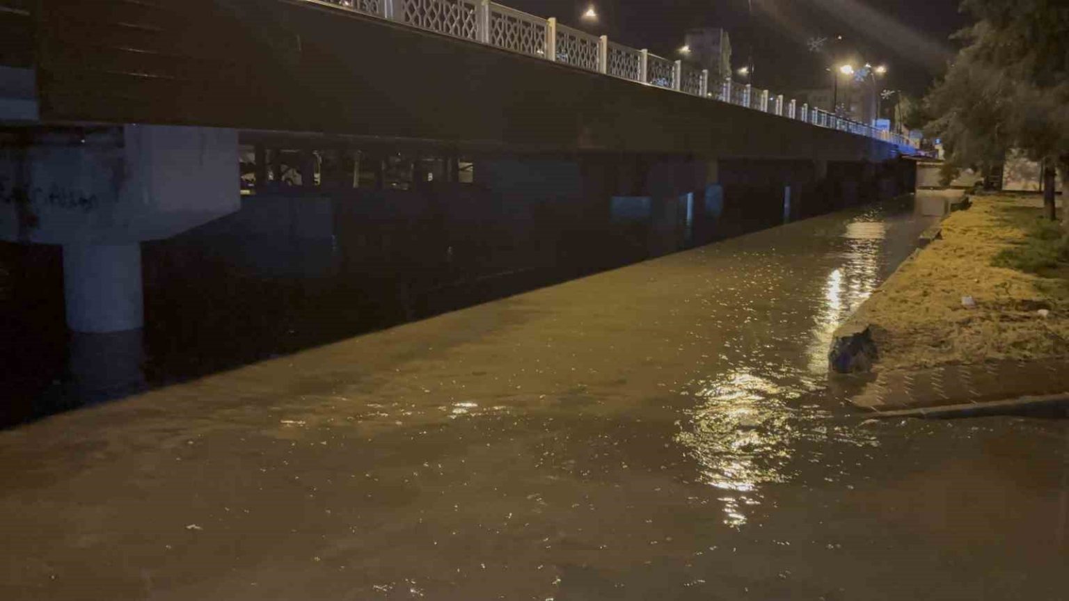Çanakkale’de son yağışlarla birlikte kent merkezinin içme ve kullanma suyu ihtiyacını karşılayan Atikhisar Barajı’nın su seviyesinin yüzde 100’e ulaşmasının ardından devam eden yağışlar nedeniyle kenti ikiye bölen Sarıçay’da su debisinin yükselmesiyle yer yer taşmalar meydana geldi.