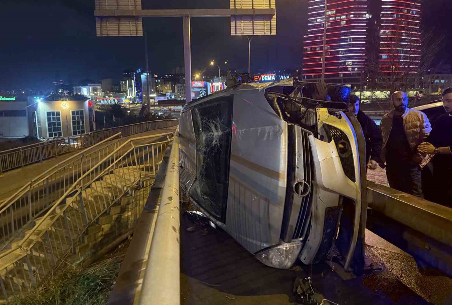 Kaza, saat 21.30 sıralarında E-5 yan yol Avcılar mevkiinde meydana geldi. Edinilen bilgilere göre, M.K. yönetimindeki 34 YS 0545 plakalı otomobil, aynı yönde seyir halinde bulunan Refik E. idaresindeki 34 EJ 7925 plakalı araca çarptı. Çarpmanın etkisiyle kontrolden çıkan 34 YS 0545 plakalı otomobil, bariyerleri aşarak köprü korkulukları ile bariyer arasına devrildi. Kazada, sürücü M.K. ile yolcu olarak bulunan A.K. yaralandı. İhbar üzerine olay yerine polis, itfaiye ve sağlık ekipleri sevk edildi. Araçta sıkışan yaralılar, itfaiye ekiplerinin çalışmasıyla kurtarılarak ambulansla hastaneye kaldırıldı. Kaza nedeniyle araçlarda maddi hasar meydana gelirken, polis ekipleri olayla ilgili inceleme başlattı.