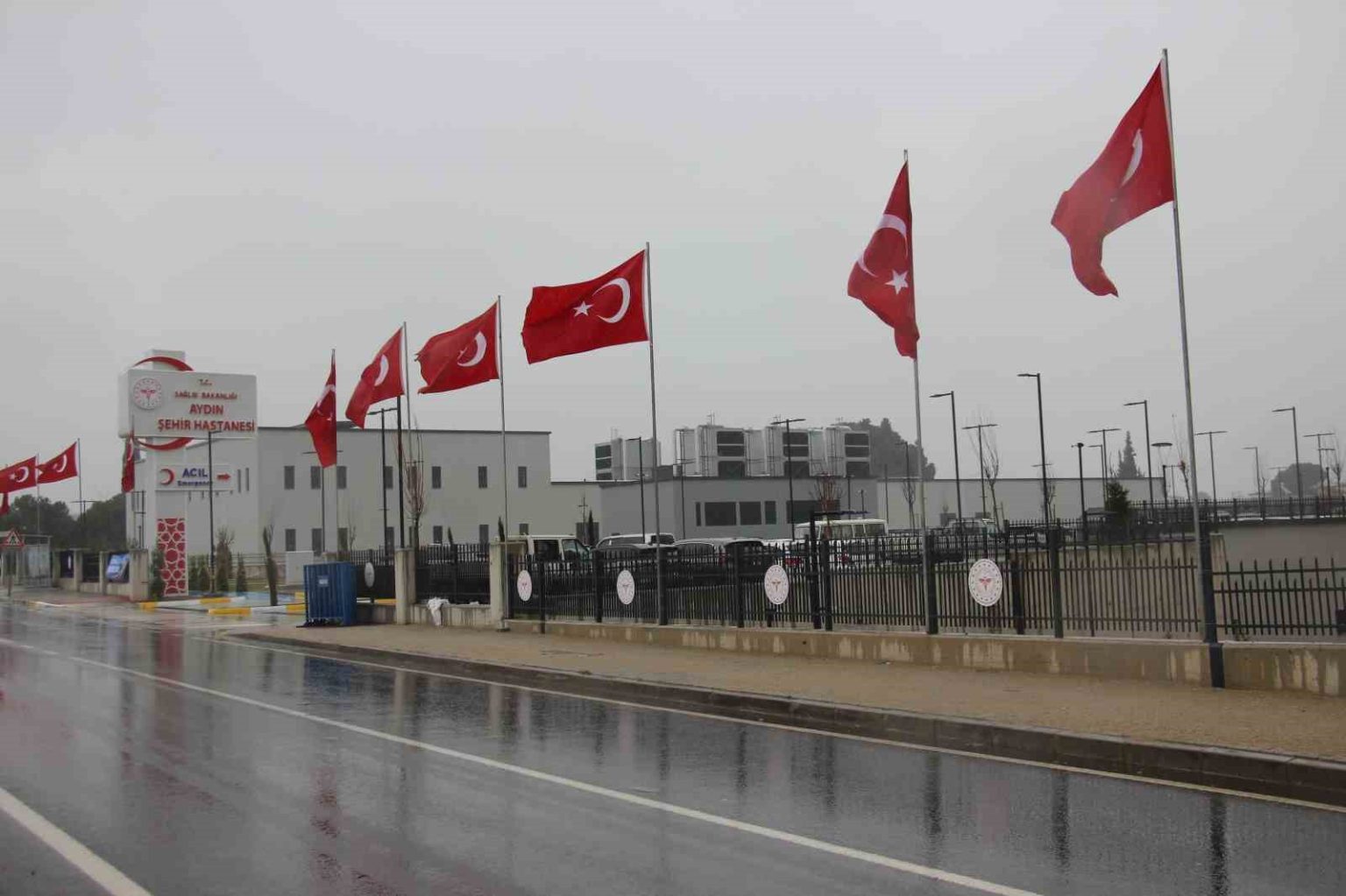 Cumhurbaşkanı Recep Tayyip Erdoğan’ın açılışını yapacağı Aydın Şehir Hastanesi’nde hazırlıklar tamamlanırken, hastane bayraklarla donatıldı.
