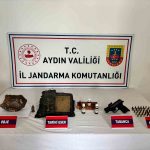 Aydın İl Jandarma Komutanlığı KOM Şube Müdürlüğü ve Efeler İlçe Jandarma Komutanlığınca yürütülen Anadolu Mirası Operasyonları kapsamında, Efeler Güzelhisar Mahallesi’nde ikamet eden M.E. (50) isimli şüphelinin ikametinde arama gerçekleştirildi. Aramalarda 1 adet Ortodoks/Bizans dönemine ait 16 sayfadan oluşan deri üzerine altın işlemeli dua (tılsım) kitabı, 1 adet Neolitik döneme ait mozaik taşı, 1 adet Roma/Bizans dönemine ait 4 cm uzunluğunda minyatür heykel, 1 adet ruhsatsız, seri numarası olmayan tabanca, 1 adet tabanca şarjörü, 41 adet 7×65 çapında fişek, Altın ve gümüş saflık ayarında kullanılan solüsyon ve mihenk taşı ele geçirildi. Yakalanan şüpheli adli kontrol şartıyla serbest bırakıldı.