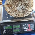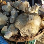 Tezgahtaki iri mantarlar pazara gelen vatandaşların yoğun ilgisini çekerken, birçok kişi mantarların büyüklüğünü cep telefonlarıyla görüntüledi.