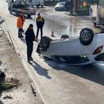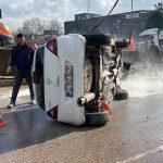 Aynı yerde 5 saat arayla ikinci kaza: Otomobil yan yola düşüp ters döndü, 2 kişi yaralandı