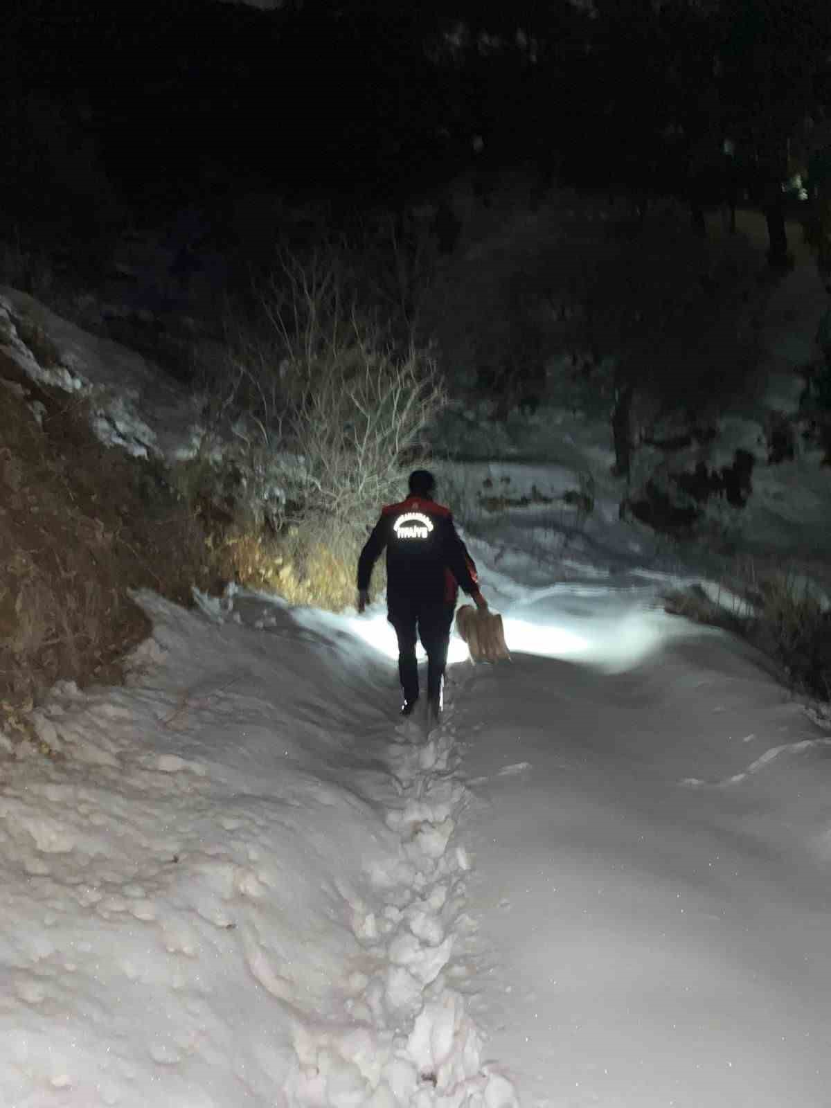 Kahramanmaraş’ta kar yağışı sonrası bağ evinde mahsur kalan aileye itfaiye ekipleri erzak desteği sağladı.