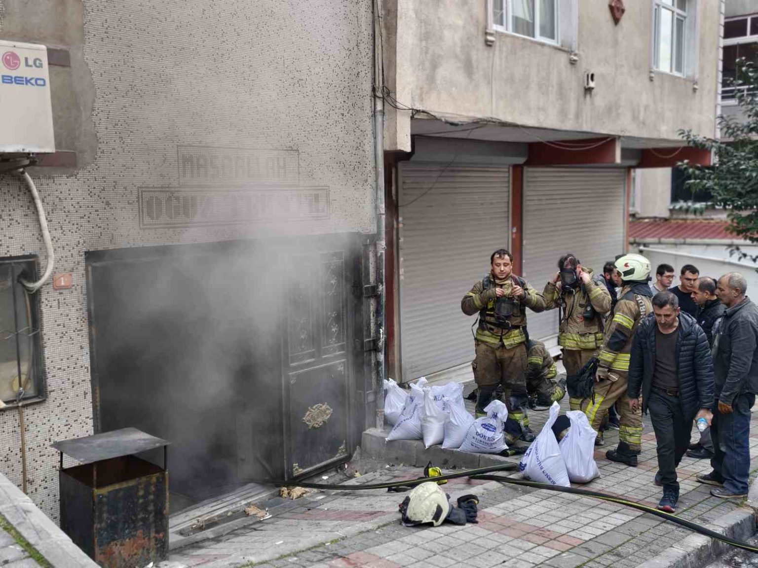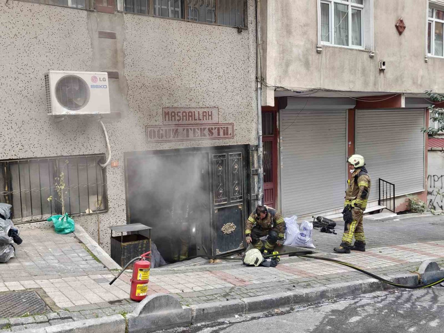 İstanbul Bağcılar’da 5 katlı bir binanın bodrum katındaki tekstil atölyesinde yangın çıktı. Alevler itfaiye ekipleri tarafından söndürülürken, atölyede maddi hasar meydana geldi.