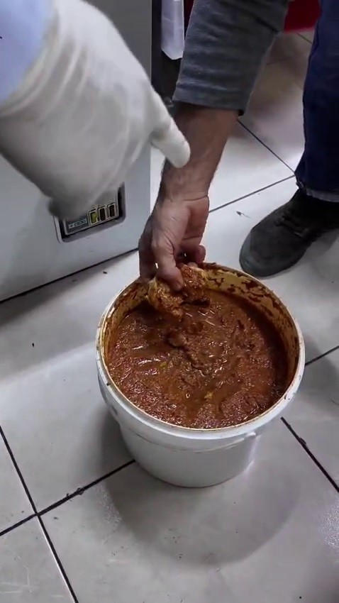 Hatay’ın Dörtyol ilçesinde zabıta ekiplerinin iş yeri denetimi esnasında baharat dolu kovanın içerisine bırakılan çiğ et ekipleri şaşırtırken, işletmecinin eti baharat bozulmasın diye koyduğunu söylemesi dikkat çekti.