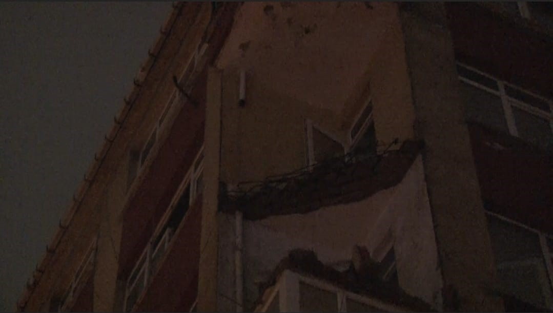 Bahçelievler’de daha önce boşaltılan binanın balkonu sağanak sonrası çöktü