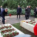 Dışişleri Bakanı Hakan Fidan, 16. Büyükelçiler Konferansı’nın resmi açılış töreni öncesi beraberindeki bakan yardımcıları ve büyükelçiler ile Cebeci Asri Mezarlığı’ndaki Dışişleri Şehitliği’ni ziyaret etti.
