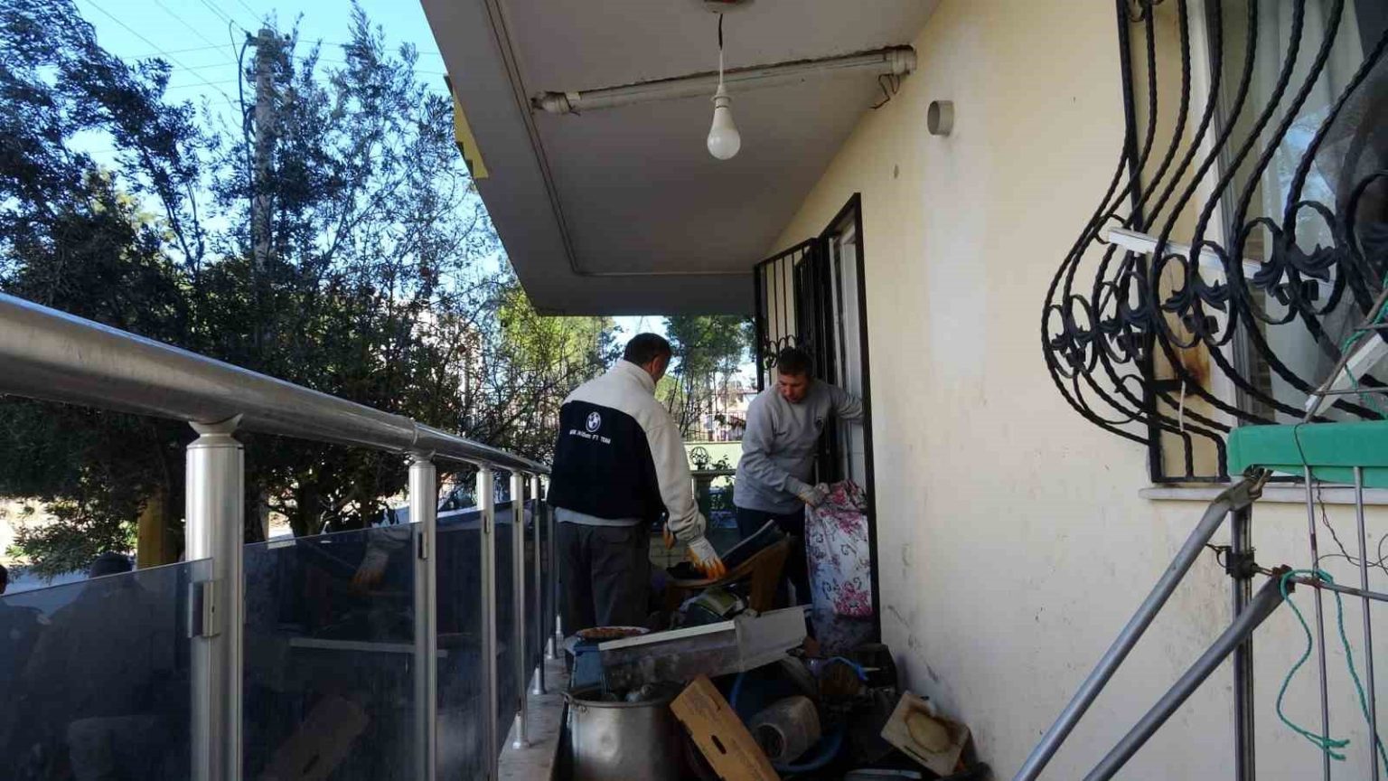 Antalya’da apartman sakinlerinin başvurusu sonucu bakıma muhtaç haldeki yaşlı adam bakımevine yerleştirilirken, evinde biriktirdiği çöp ve atık malzemeler Kepez Belediyesi ekiplerince temizlendi.