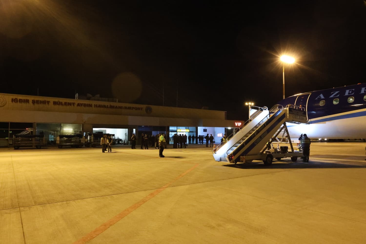 İran’dan Nahçıvan Özerk Cumhuriyeti Havalimanı’na insansız hava aracıyla düzenlenen saldırıda terminal binasının isabet etmesi sonucu 2 kişi yaralanırken, binada da hasar meydana geldi. Saldırı sonrası güvenlik gerekçesiyle havalimanı geçici olarak uçuşlara kapatıldı. Bu gelişmenin ardından Bakü’den Nahçıvan’a gitmek üzere havalanan iki yolcu uçağı, Iğdır Şehit Bülent Aydın Havalimanı’na yönlendirildi. İki uçak, saat 20.30 ve 23.00 sıralarında 150 yolcusuyla güvenli şekilde iniş gerçekleştirdi. Iğdır’da yetkililer tarafından çiçeklerle karşılanan yolcuların güvenli şekilde ülkelerine ulaşmaları için gerekli tüm tedbirlerin alındığı öğrenildi. Uçaktan inen Nahçıvanlı yolcular, pasaport işlemlerinin ardından Iğdır’da hazır bekleyen otobüslerle Nahçıvan’a hareket etti. Aynı şekilde Nahçıvan’dan Bakü’ye gidecek yolcular da otobüslerle Iğdır’a getirildi. Yolcular burada uçağa binerek Bakü’ye gitti. Dün gece Bakü’den 150 yolcu gelirken, Nahçıvan’dan gelen 166 yolcu ise uçakla Bakü’ye gitti.