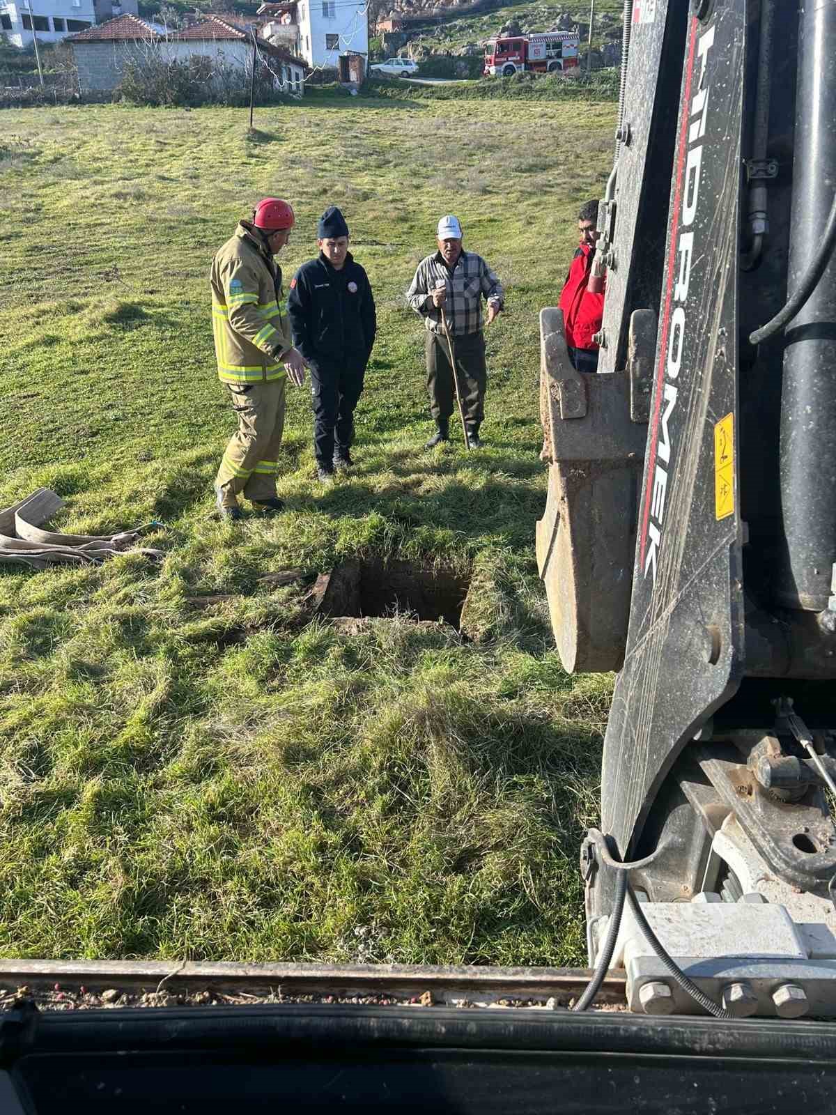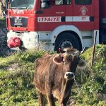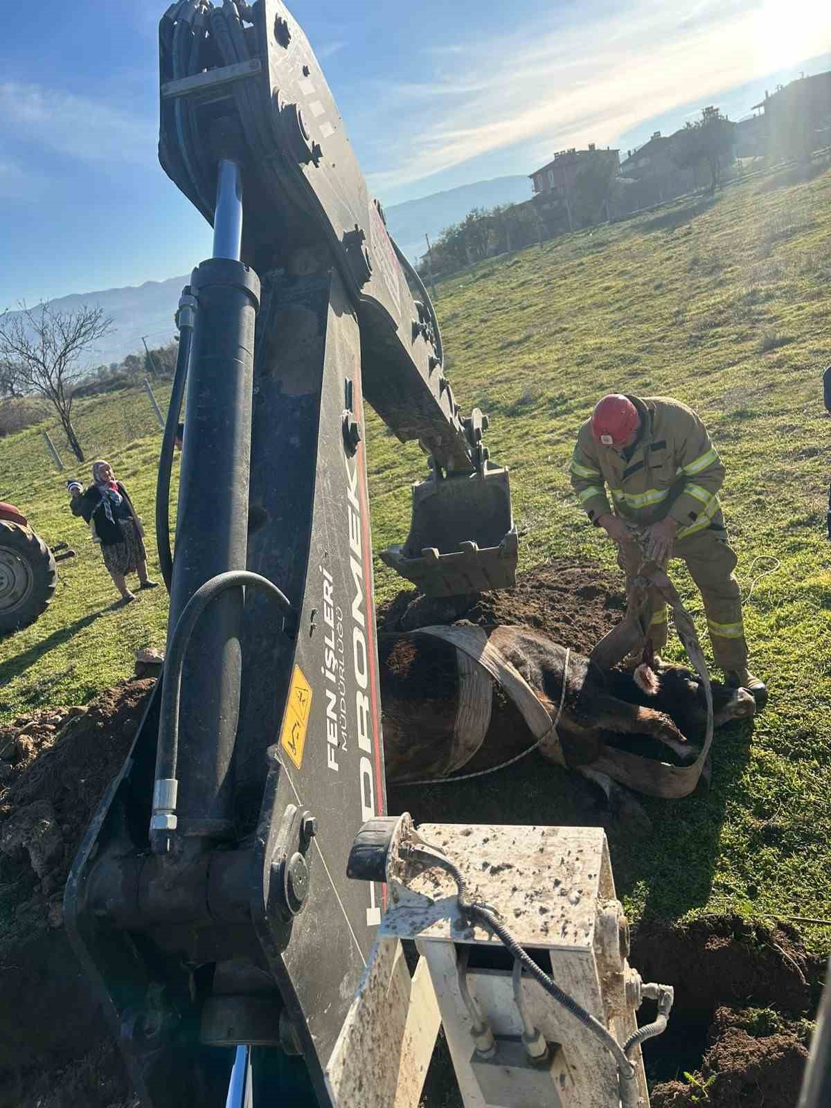 Balıkesir’de kuyuya düşen inek kurtarıldı