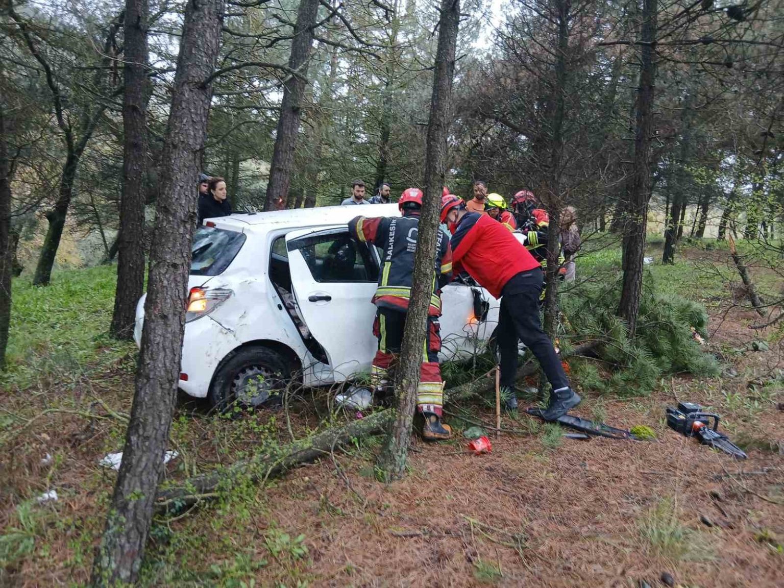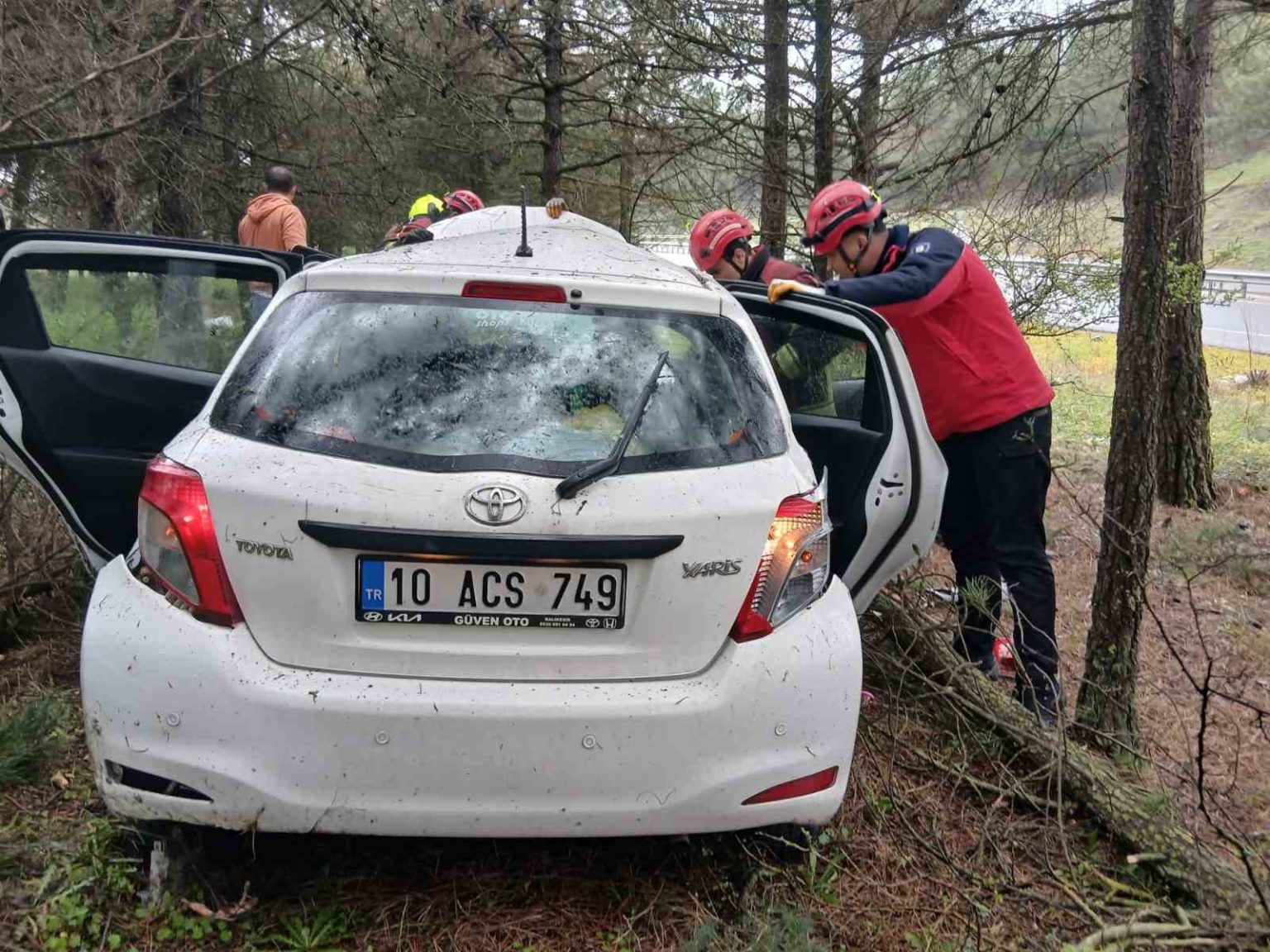 Balıkesir’de otomobil ormanlık alana uçtu: 2 yaralı