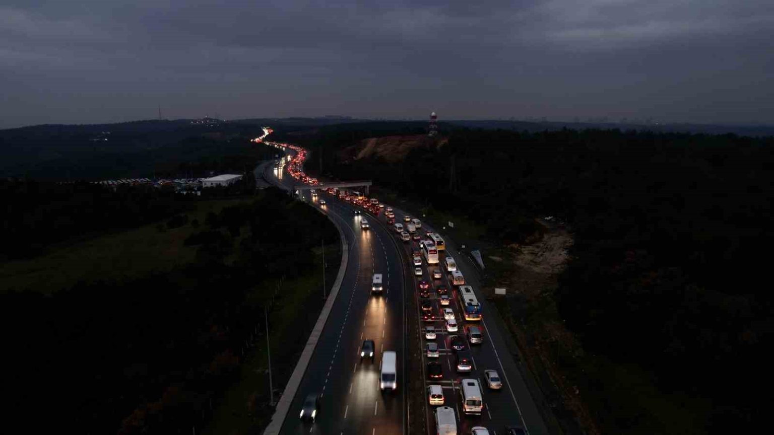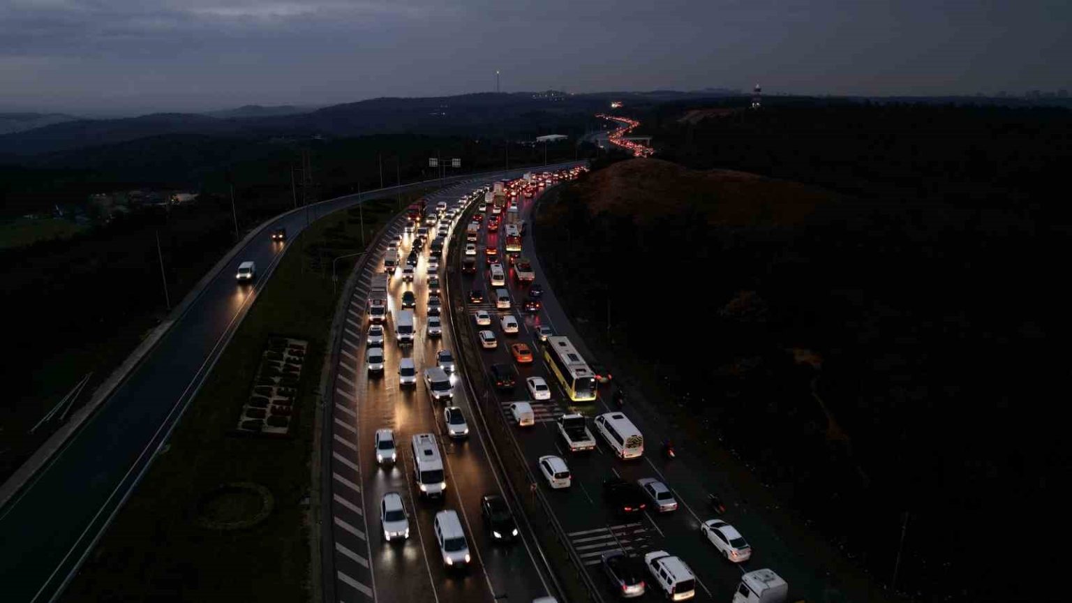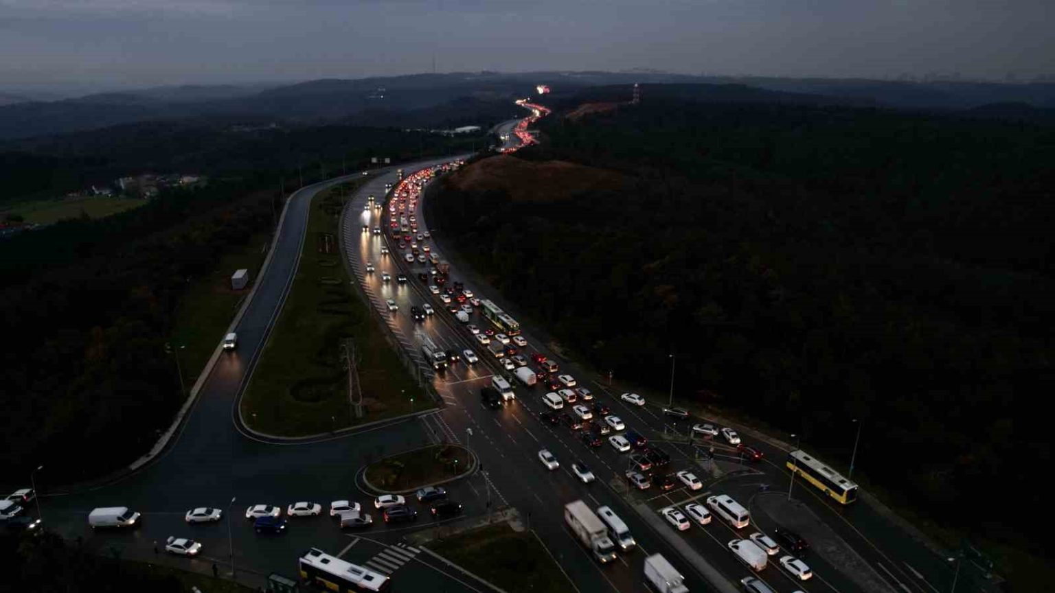 Başakşehir’de zincirleme kaza sonrası oluşan trafik yoğunluğu havadan görüntülendi