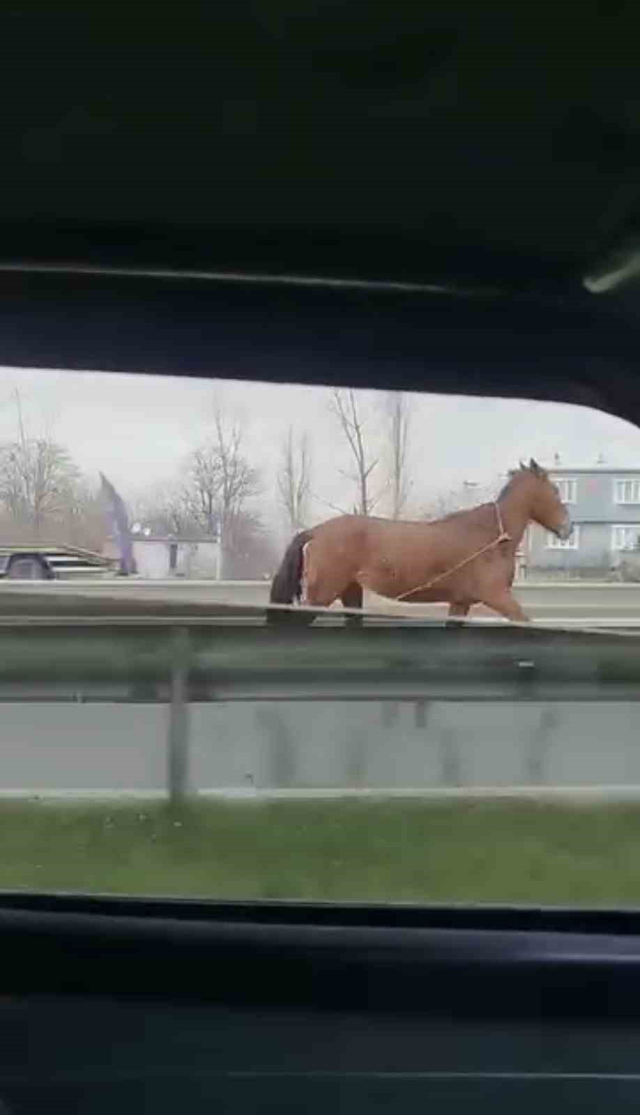 O anlar çevredeki vatandaşlar tarafından cep telefonu kamerasıyla kaydedildi. Görüntülerde atın bir süre yol ortasında dolaştığı, sürücülerin ise hızlarını düşürerek ilerlediği görüldü.