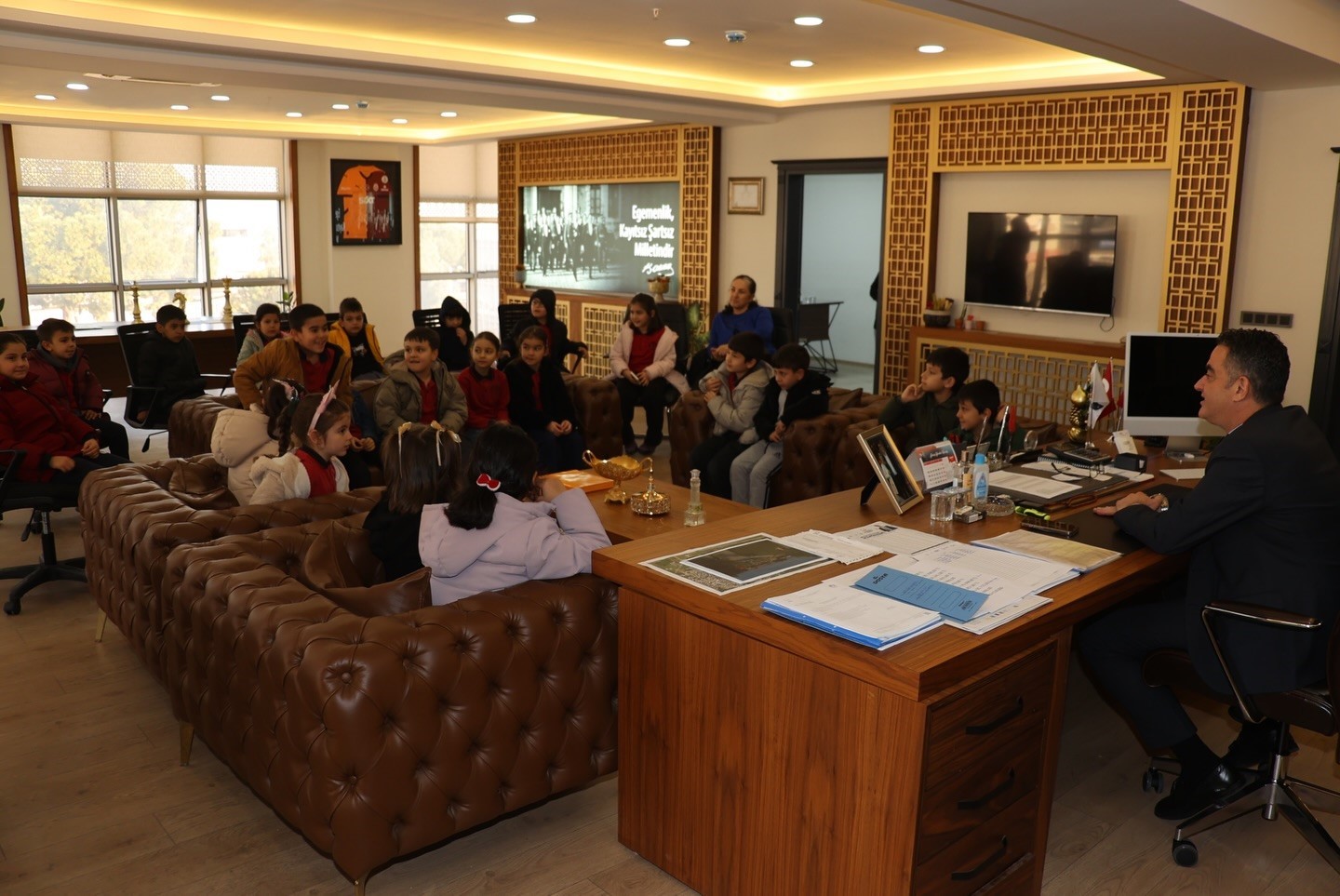 Koçarlı Atatürk İlkokulu 2. sınıf öğrencileri, öğretmenleri eşliğinde Koçarlı Belediye Başkanı Özgür Arıcı’yı ziyaret ederek belediye çalışmaları hakkında bilgi aldı.
