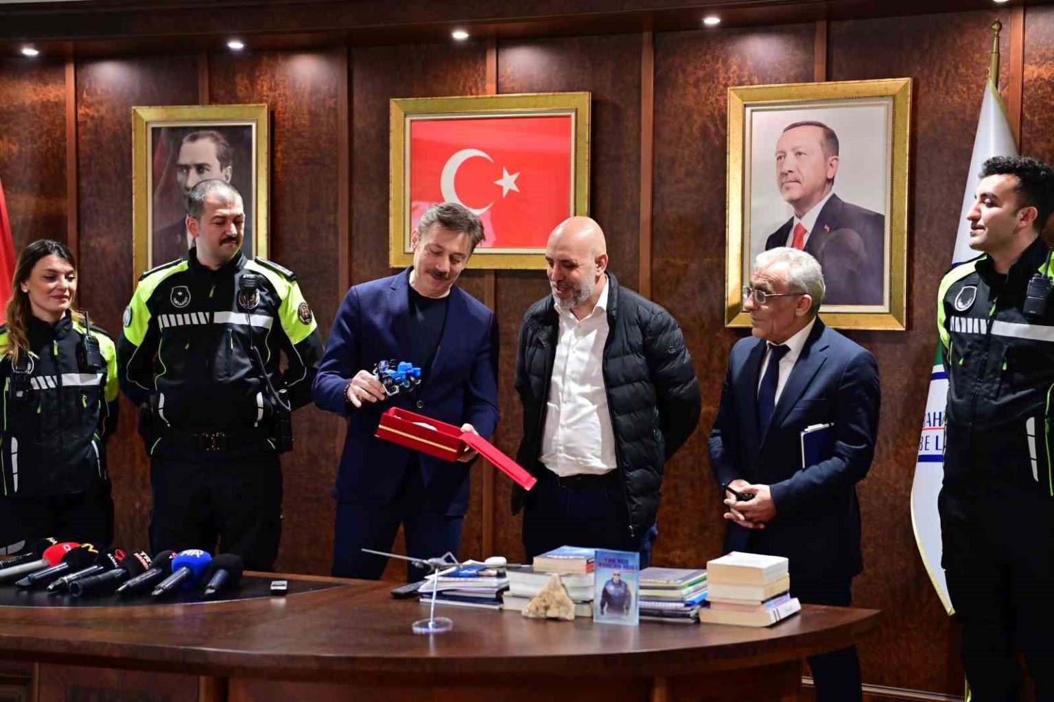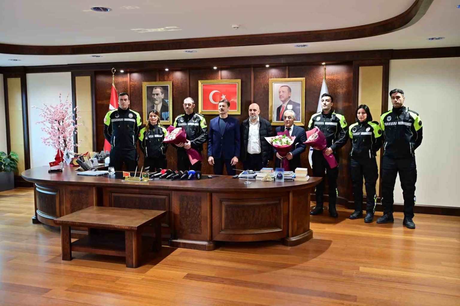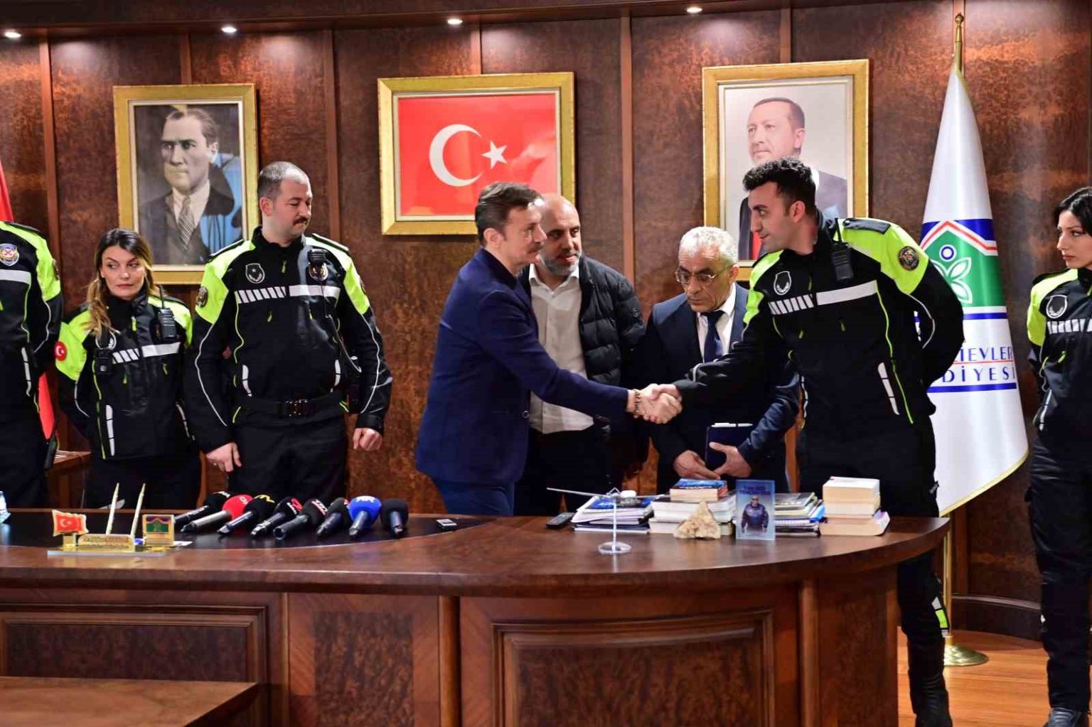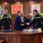Geçtiğimiz günlerde yoğun trafik nedeniyle hastaneye ulaşamayan bir ailenin yardımına Bahçelievler Belediyesine Motosikletli Zabıta Ekipleri yetişmiş, ekipler 3 aylık bebeği kucağına alarak dakikalar içinde hastaneye ulaştırmıştı. O anlar kask kameralarına yansırken, yaşananlar tüm Türkiye’de büyük yankı uyandırmıştı. Bahçelievler Belediye Başkanlığı’nda düzenlenen törende Bahçelievler Belediye Başkanı Hakan Bahadır, zabıta memurları ve 3 aylık bebeğin babası bir araya geldi. Program kapsamında, fedakarlık sergileyen zabıta personeli, Bahçelievler Belediye Başkanı Dr. Hakan Bahadır tarafından ödüllendirildi.