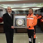 Konuşmaların sonunda ISAK ekibi INSARAG standartlarında aldığı ‘Kentsel Arama ve Kurtarma Orta Ekip Akreditasyon Belgesi’ni Belediye Başkanı Şükrü Başdeğirmen’e takdim etti. Ekip ayrıca Başkan Başdeğirmen’e Kahramanmaraş’ta 12 Şubat Mahallesi’ndeki 10 dairelik Erciyes Apartmanı’ndan 72 saat sonra kurtardıkları Gülten hanımın hatıra olarak verdiği duvar saatini takdim etti.