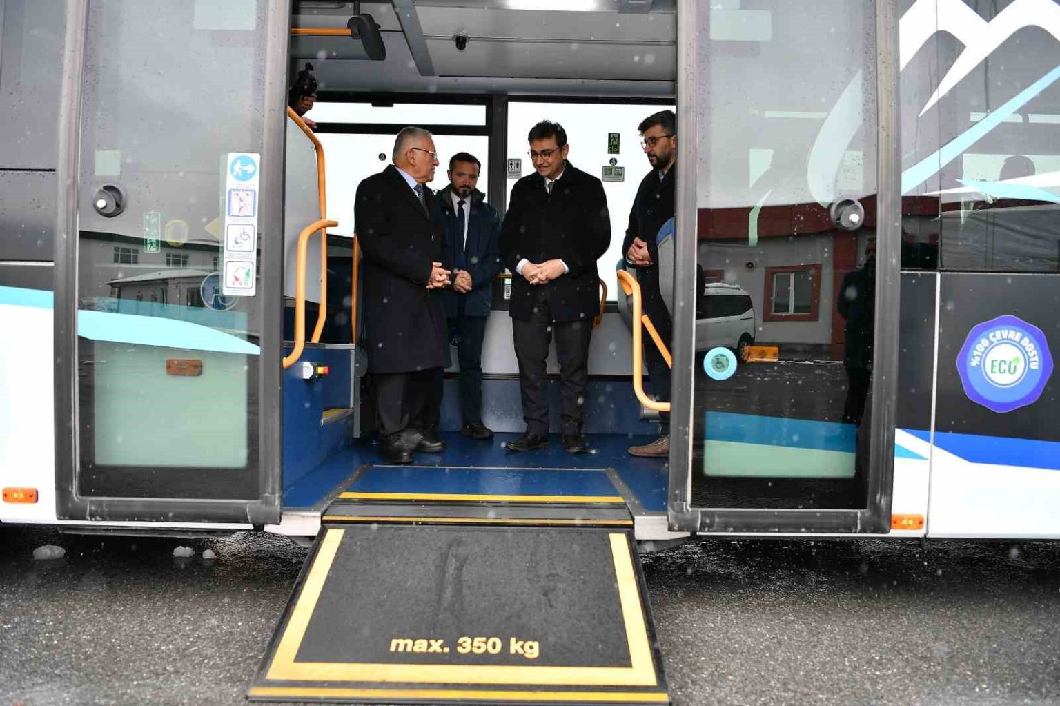 Kayseri Büyükşehir Belediye Başkanı Dr. Memduh Büyükkılıç, Büyükşehir bünyesindeki temiz enerjiyle, konforlu ve erişilebilir ulaşım için çalışmalarını sürdüren Ulaşım A.Ş.’de, otobüs filosuna katılan yüzde 100 elektrikli, sessiz ve sıfır emisyonlu yeni otobüs ve elektrikli bisikletleri inceleyerek bilgi aldı.