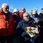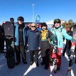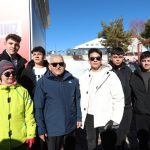 Erciyes Kayak Sezonu açılışında Başkan Büyükkılıç, ziyaretçilerle fotoğraf çekinerek sohbet etti.