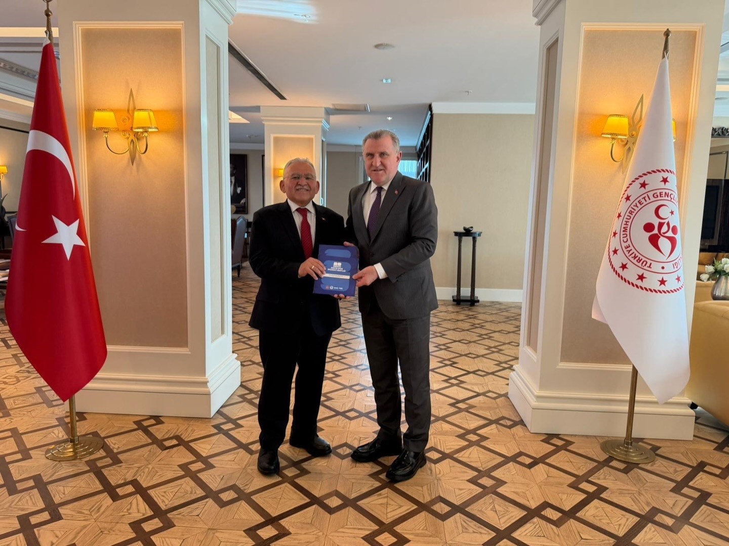 Başkan Büyükkılıç, başkent Ankara’da gerçekleştirdiği program kapsamında önemli temaslarda bulundu. Büyükşehir Belediye Başkanı Dr. Memduh Büyükkılıç, ilk olarak Gençlik ve Spor Bakanı Osman Aşkın Bak ile bir araya gelerek, Kayseri’nin spor alanındaki mevcut durumu ve gelecek hedeflerini kapsamlı şekilde ele aldı. Görüşmede, 2024 Avrupa Spor Şehri ünvanına sahip olan Kayseri’nin, Altın Bayrak ödülüyle taçlandırılan spor başarıları ve 2029 Dünya Spor Başkenti adaylığı süreci değerlendirildi. Başkan Büyükkılıç, şehrin spor altyapısının güçlendirilmesi, gençliğe yönelik yatırımların arttırılması ve uluslararası organizasyonlara ev sahipliği yapma hedefleri doğrultusunda yürütülen çalışmaları Bakan Bak’a aktardı. Büyükkılıç, nazik ev sahipliği dolayısıyla Bakan Bak’a teşekkür etti. Başkan Büyükkılıç, Ankara temasları kapsamında, ayrıca AK Parti Yerel Yönetimlerden Sorumlu Genel Başkan Yardımcısı Mustafa Demir başkanlığında düzenlenen İstişare ve Değerlendirme Toplantısı’na da katıldı. Toplantıda, yerel yönetimlerin hizmet kalitesinin arttırılması ve şehirlerin daha yaşanabilir hale getirilmesi yönünde yürütülen çalışmalar ele alındı.