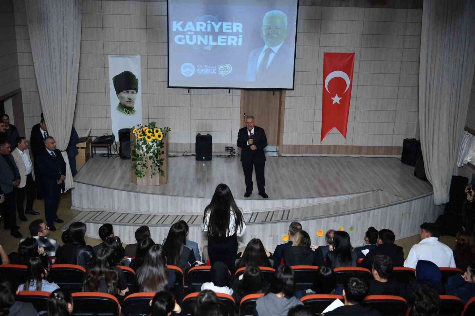Programda öğrenciler tarafından çiçeklerle karşılanan Büyükkılıç, Kayseri Büyükşehir Belediyesi’nin gençlere yönelik yatırım, proje ve hizmetlerinden bahsederken, kendi hayat tecrübelerini de paylaşarak öğrencilere kariyer yolculuklarında tavsiyelerde bulundu.