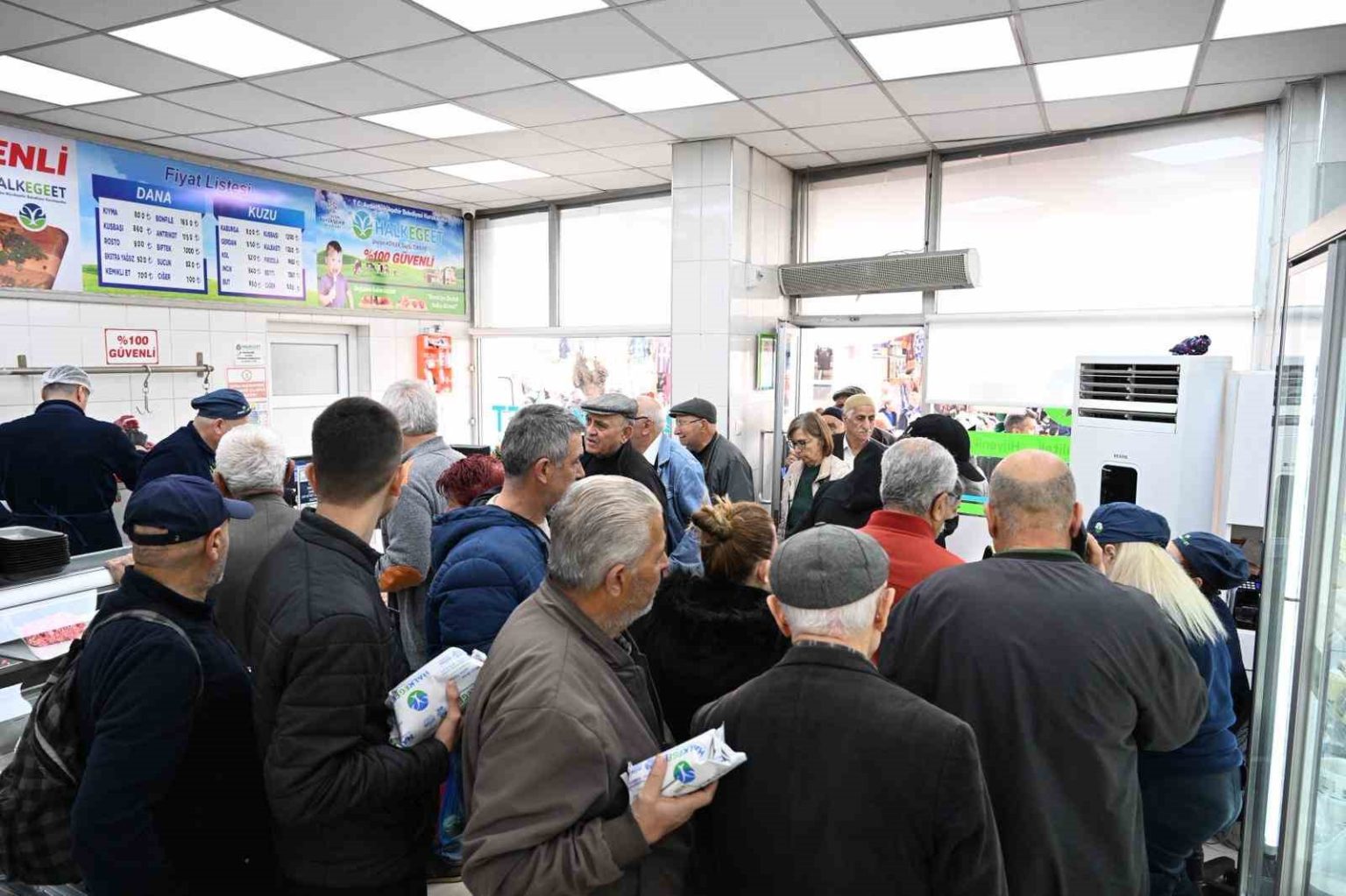 Aydın Büyükşehir Belediyesi tarafından hizmete açılan; güvenilir, hijyenik ve uygun fiyatlı ürünleri vatandaşlarla buluşturan Halk Ege Et şubelerinde, Ramazan Bayramı öncesinde uygulanan indirim vatandaşlar tarafından ilgiyle karşılandı.