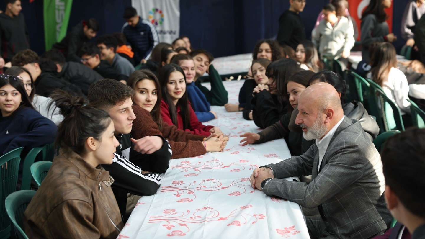 Her hafta farklı bir okulda gençlerle bir araya gelen Başkan Çolakbayrakdar, Kafe Sinan’da hazırlanan özel “Kocaburger” ikramı eşliğinde öğrencilerle sohbet etti. Program kapsamında gençlerin talep ve beklentilerini dinleyen Başkan Çolakbayrakdar, gençlerin Türkiye’nin ve şehrin geleceği olduğunu ifade etti.