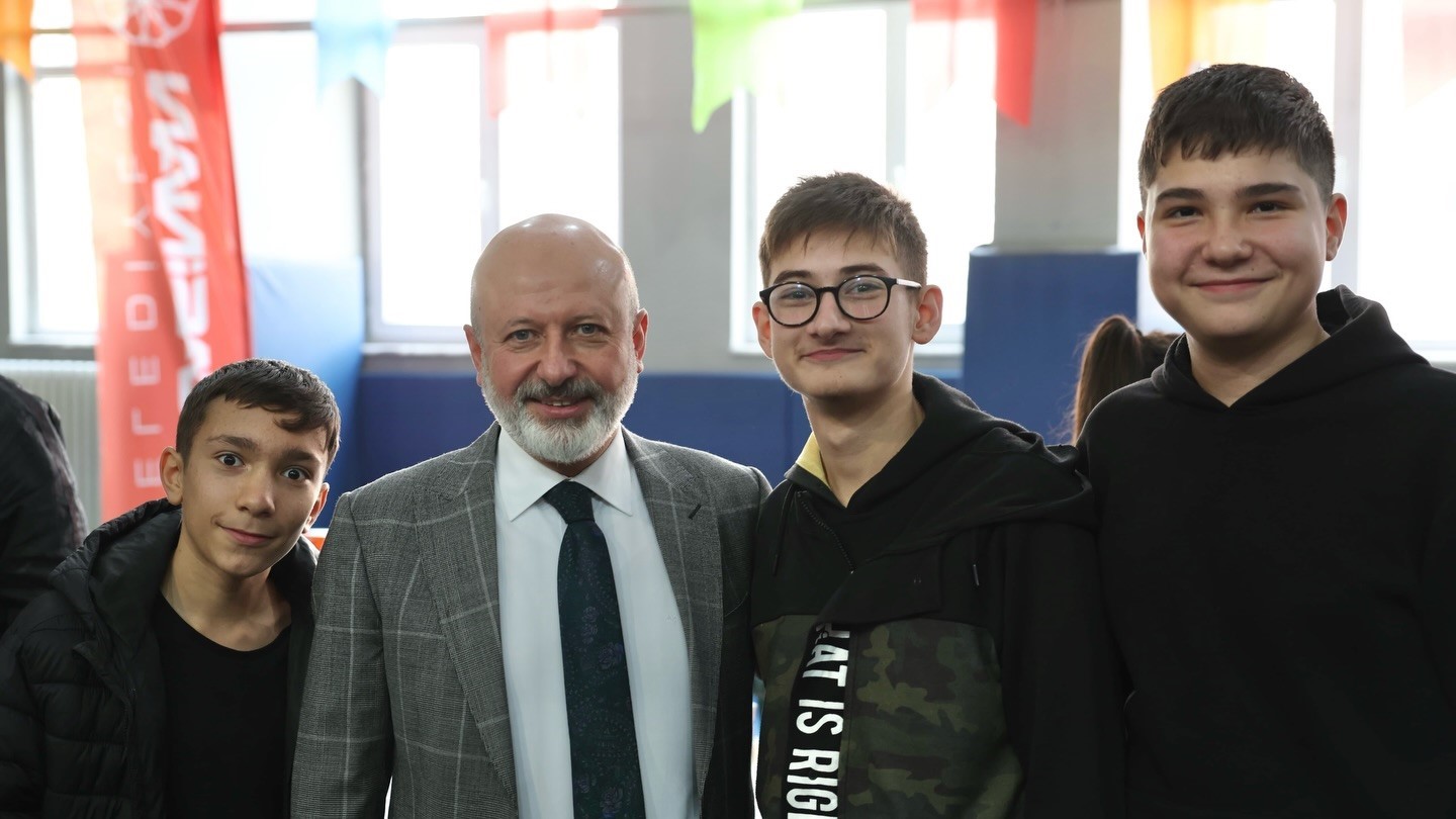 Mevlana Mahallesi’nde bulunan okulda öğrencilerle buluşan Başkan Çolakbayrakdar, özellikle mesleki eğitimin önemine dikkat çekti. Ziyaret sırasında öğrencilerden gelen talepleri de dinleyen Başkan Çolakbayrakdar, gençlerden Hamza’nın Kayserispor maçına gitme isteğine değinerek, “Genç kardeşimiz Hamza, bizi Kayserispor maçına götürmemizi istedi. Eğer arkadaşları da isterse hep birlikte bir Kayserispor maçına gideceğiz” şeklinde konuştu. Konuşmasında okulun önemine vurgu yapan Başkan Çolakbayrakdar, Arif Molu Mesleki ve Teknik Anadolu Lisesi’nin Kayseri açısından çok kıymetli bir misyona sahip olduğunu belirterek; “Bu okulun en önemli özelliği, Kayseri’mizin biyomedikal solunum cihazlarının tamir ve bakımını yapabilecek donanıma sahip gençler yetiştirmesidir. Bu gerçekten son derece kıymetli bir iştir. Burada dört yıl boyunca eğitim alarak adeta kolunuza bir altın bilezik takmış oluyorsunuz. Mezun olduğunuzda sadece bir diploma değil, aynı zamanda sizi hayata hazırlayan bir meslek sahibi oluyorsunuz. Bu, her gencin sahip olamayacağı çok önemli bir avantajdır” İfadelerine yer verdi.