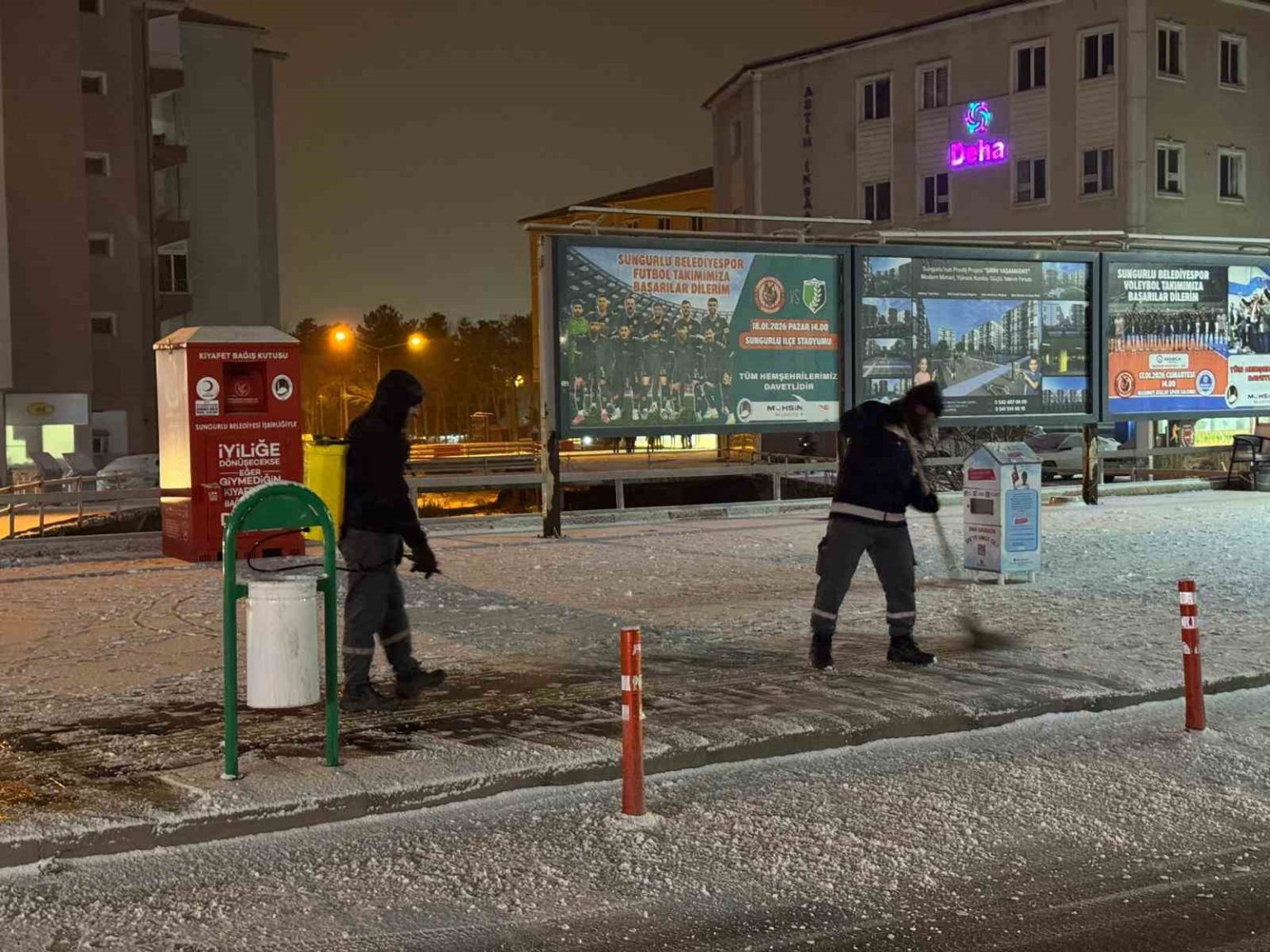 Çorum’un Sungurlu ilçesinde etkisini artıran yoğun kar yağışı sonrası belediye ekipleri teyakkuza geçti. Karla mücadele çalışmaları ilçe genelinde aralıksız devam ederken, Sungurlu Belediye Başkanı Muhsin Dere de sahaya inerek çalışmaları yerinde inceledi. Zorlu hava şartlarına rağmen görev başında olan belediye personelini ziyaret eden Başkan Dere, personele sıcak kahve ikramında bulundu. Çalışanlarla sohbet eden ve fedakarca yürütülen çalışmalar için personele teşekkür ederek kolaylıklar dileyen Muhsin Dere, “Vatandaşlarımızın güvenliği ve günlük hayatın aksamaması için ekiplerimizle birlikte sahadayız” dedi.