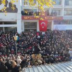 Manisa Büyükşehir Belediyesi personeli imam hatip Yusuf Kocademir’in Kur’an-ı Kerim tilavetinin ve yapılan duanın ardından belediye önündeki tören sona erdi.