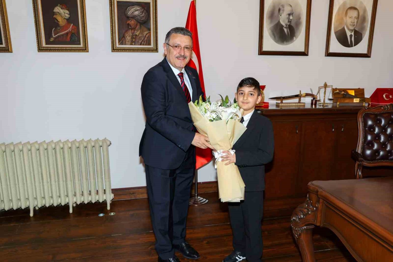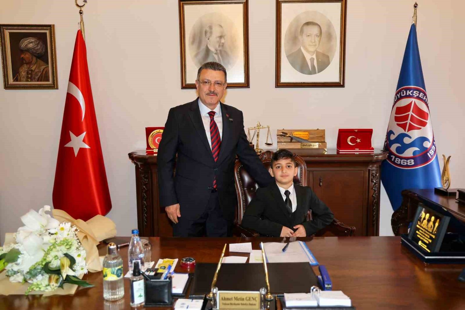 Trabzon Büyükşehir Belediye Başkanı Ahmet Metin Genç, 23 Nisan Ulusal Egemenlik ve Çocuk Bayramı çerçevesinde makam koltuğunu temsili olarak Dumlupınar İlkokulu 3-B sınıfı öğrencisi Hamza Arslan’a devretti. Büyükşehir Belediyesi’nde düzenlenen programa Hamza’nın yanı sıra sınıf arkadaşları da katıldı.