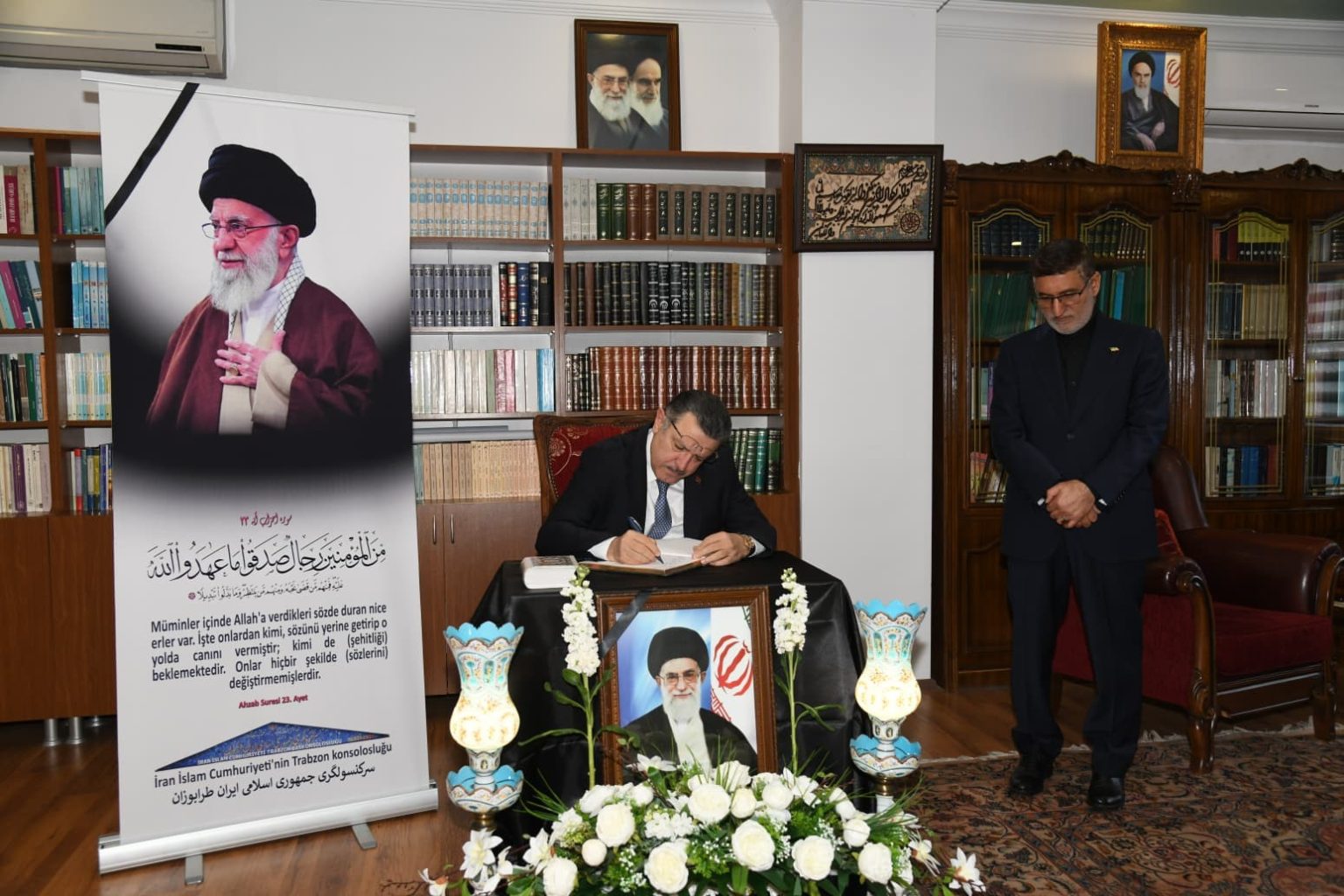 Ziyaretin sonunda Başkan Genç, Ali Hamaney ve savaşta ölen İranlılar için açılan taziye defterini imzaladı.