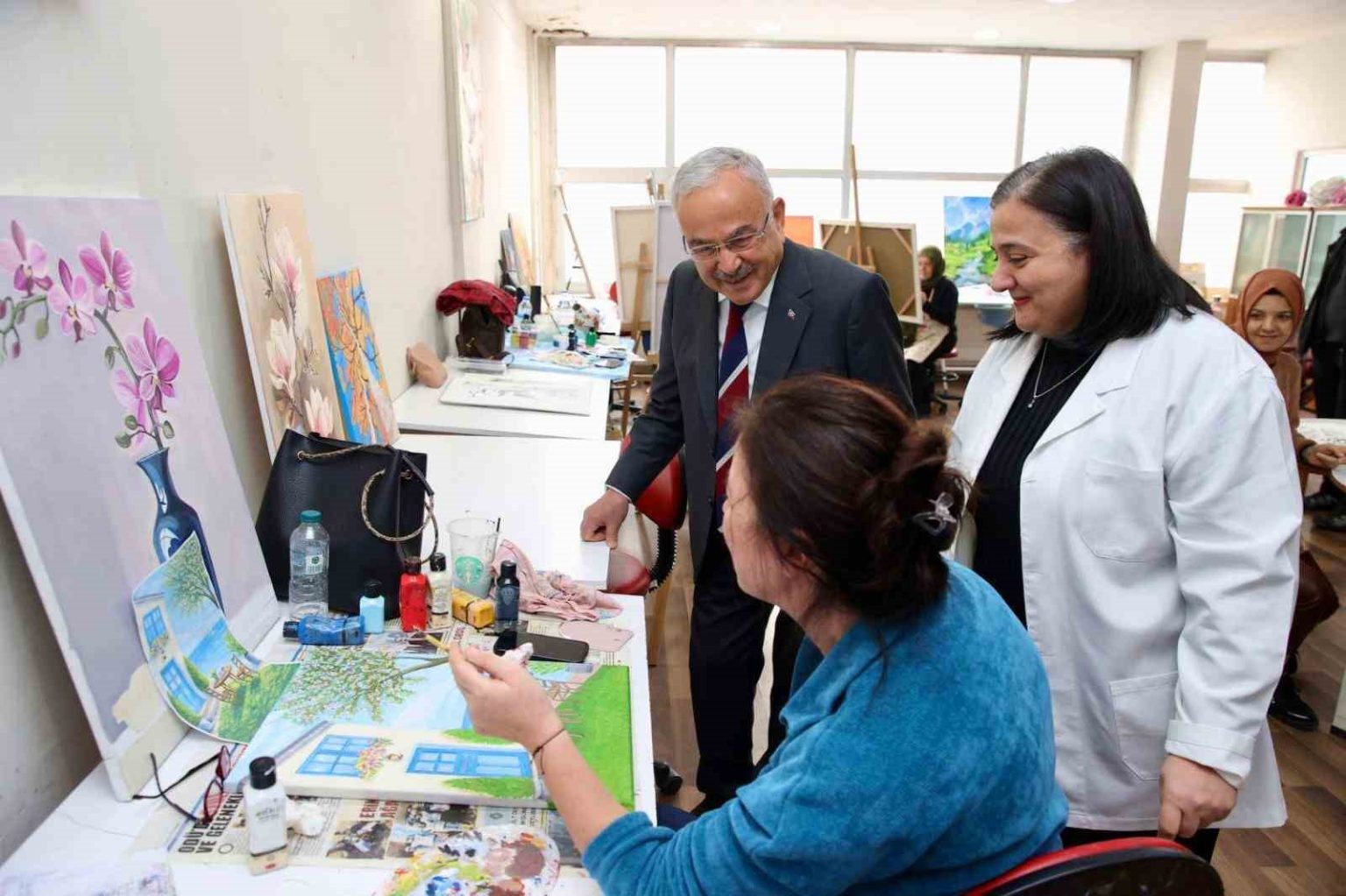 Büyükşehir Belediye Başkanı Dr. Mehmet Hilmi Güler, emeğin ve yeteneğin sanata dönüştüğü, kursiyerlerin ev ekonomilerine katkı sunduğu Büyükşehir Belediyesi Meslek ve Sanat Eğitimi Kursları’nın (ORMEK) Altınordu şubesini ziyaret etti. Kursiyerler ve eğitmenlerle bir araya gelen Başkan Güler, yapılan çalışmaları yakından inceledi.