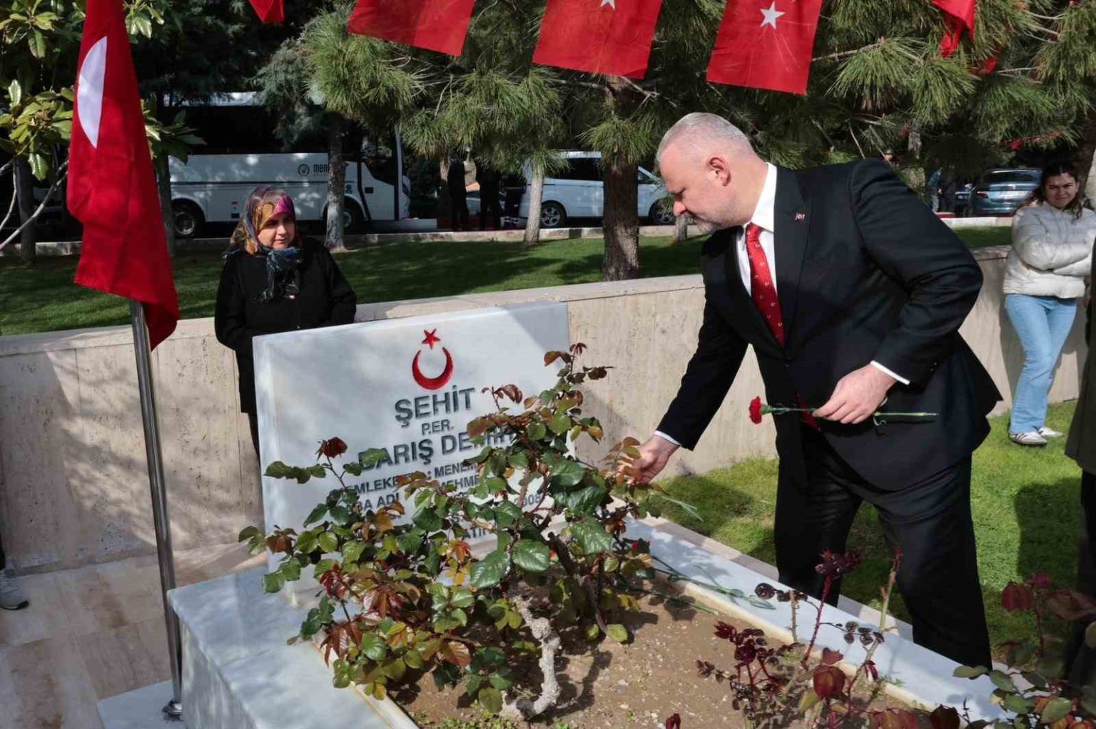 18 Mart Çanakkale Zaferi ve Şehitleri Anma Günü’nde Menemen’in her yerinde anma programları düzenlendi. Gurur ve minnetle örülü programların ilk adresi Yıldıztepe Şehitliği oldu. Şehitler için saygı duruşu ve İstiklal Marşı ile başlayan törene Menemen Belediye Başkanı Aydın Pehlivan, Menemen Kaymakamı Vedat Yılmaz, Menemen Cumhuriyet Başsavcısı Hüseyin Kaçar, Menemen Garnizon Komutanı Topçu Albay Zekeriya Tosun, AK Parti Menemen İlçe Başkanı Hakkı Durmaz, MHP Menemen İlçe Başkanı Barbaros Çalışçı, şehit aileleri ve gaziler ile vatandaşlar katıldı. Gerçekleştirilen tören ve okunan dualar sonrasında Başkan Pehlivan ve protokol üyeleri, şehitlerin kabirlerine karanfil bıraktı.