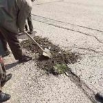 Ankara’nın Mamak ilçesinde köstebek yuvasına dönen yolları vatandaşlar kendi imkanlarıyla doldurmaya çalıştı.