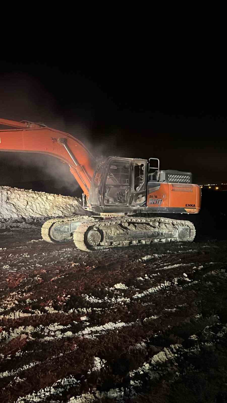 Batman Oymataş OSB şantiyesinde iş makinesi yakıldı